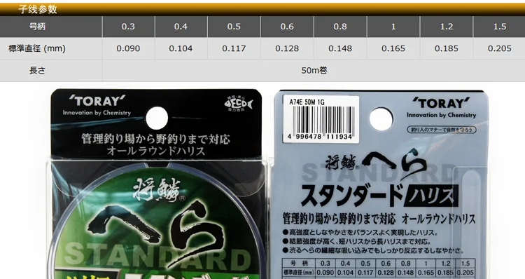 TORAY Toray-sedal de pesca a escala, línea principal de nailon, línea secundaria, línea de agua dulce, línea de pesca de plataforma A74