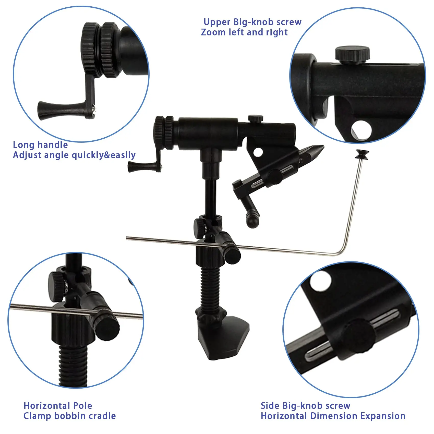 ¡El tornillo de banco de atado de moscas de la generación Riverruns II es un verdadero tornillo de banco de atado de moscas de acción giratoria extensible en el mercado! ¡Cualquier gancho sujeto por las mordazas puede permanecer exactamente en el mismo punto central durante la rotación! CNC calculado cortado en la barra de mordazas para lograr el mejor equilibrio entre el tornillo de banco y la rotación más suave. La tensión de la rotación es totalmente ajustable desde roca sólida hasta casi sin fricción.
