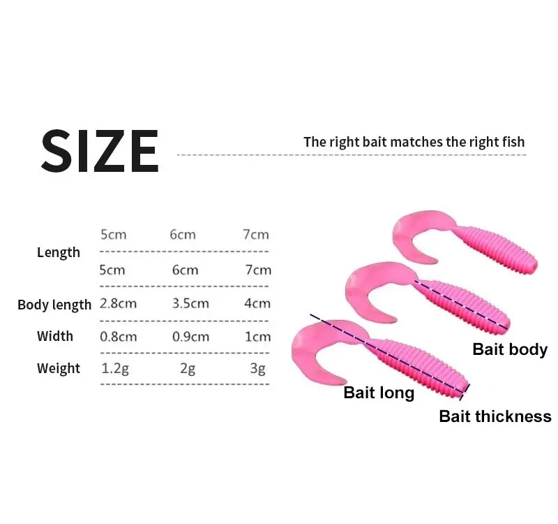 5CM 6cm 7cm tornillo ambiental de alta calidad cola única con gusano redondo gusano gusanos cebo Artificial Señuelos de Pesca suaves