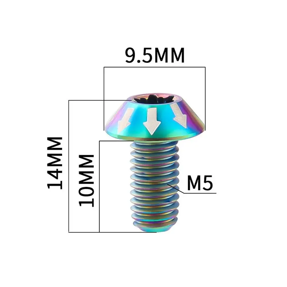 Especificación: Tamaño DE LA M5: 14*10*9,5mm Material: aleación de titanio TC4 Color: negro/dorado/color/plata Lista de embalaje: tornillo de 6 piezas Características 1. Hecho de material de aleación de titanio de alta calidad, que es ligero, de alta resistencia, resistencia a la corrosión 2. Gran capacidad para soportar altas y bajas temperaturas