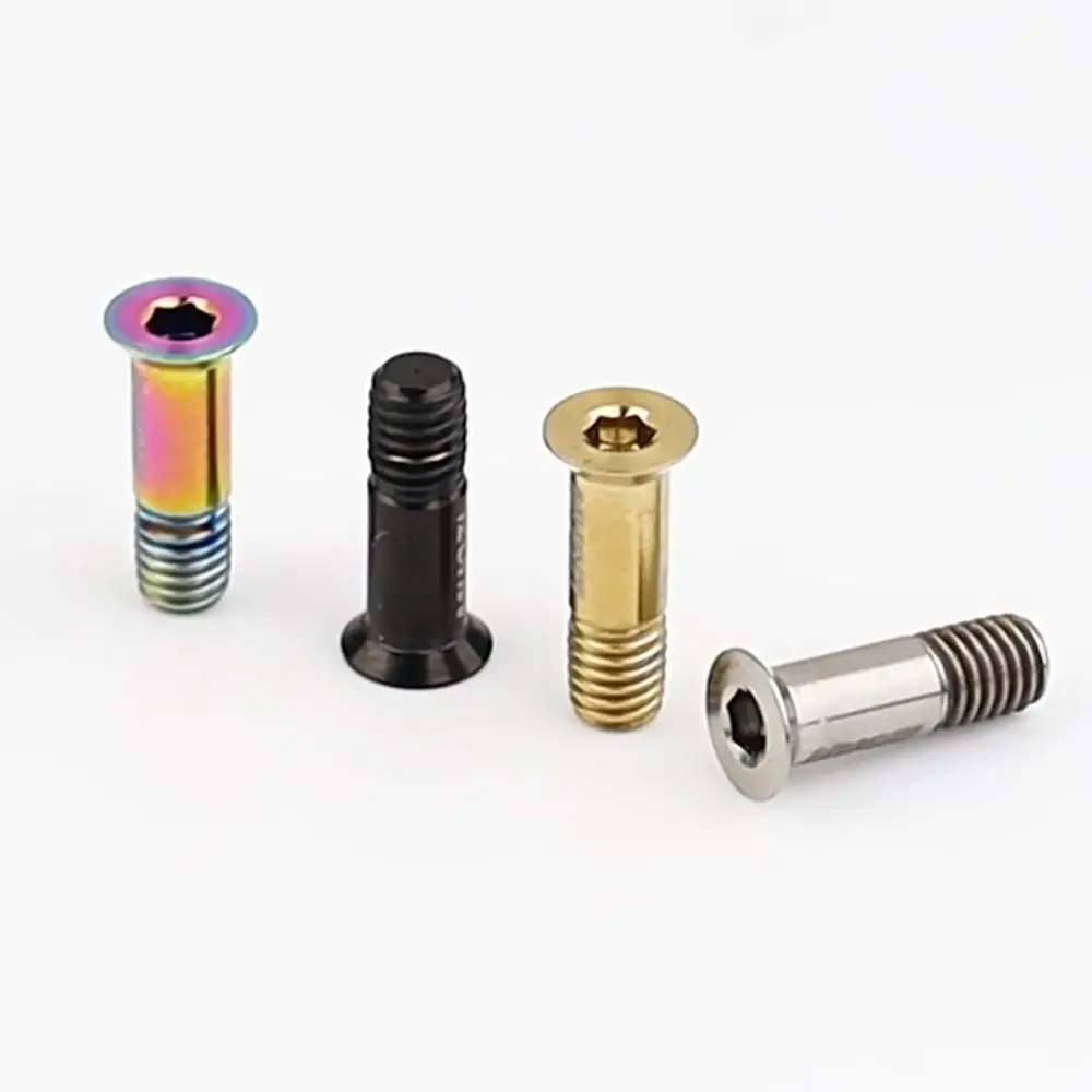 Lista de embalaje: 2 tornillos para bicicleta. Características: elija material de aleación de titanio, peso ligero, alta resistencia, buena resistencia a la corrosión.