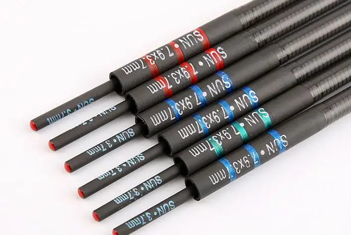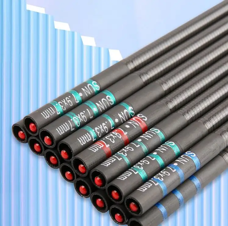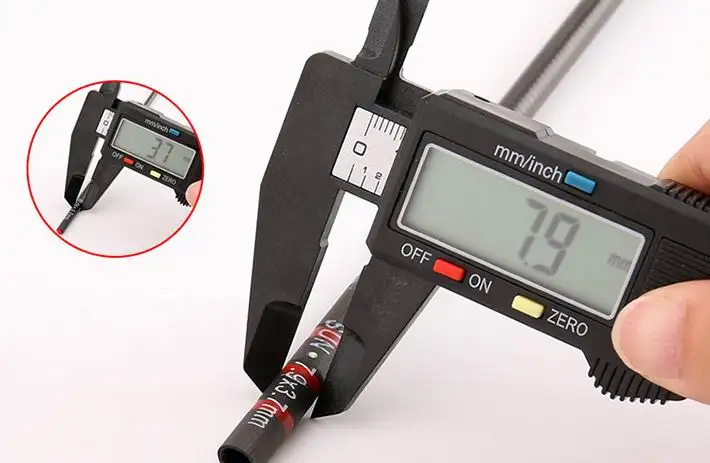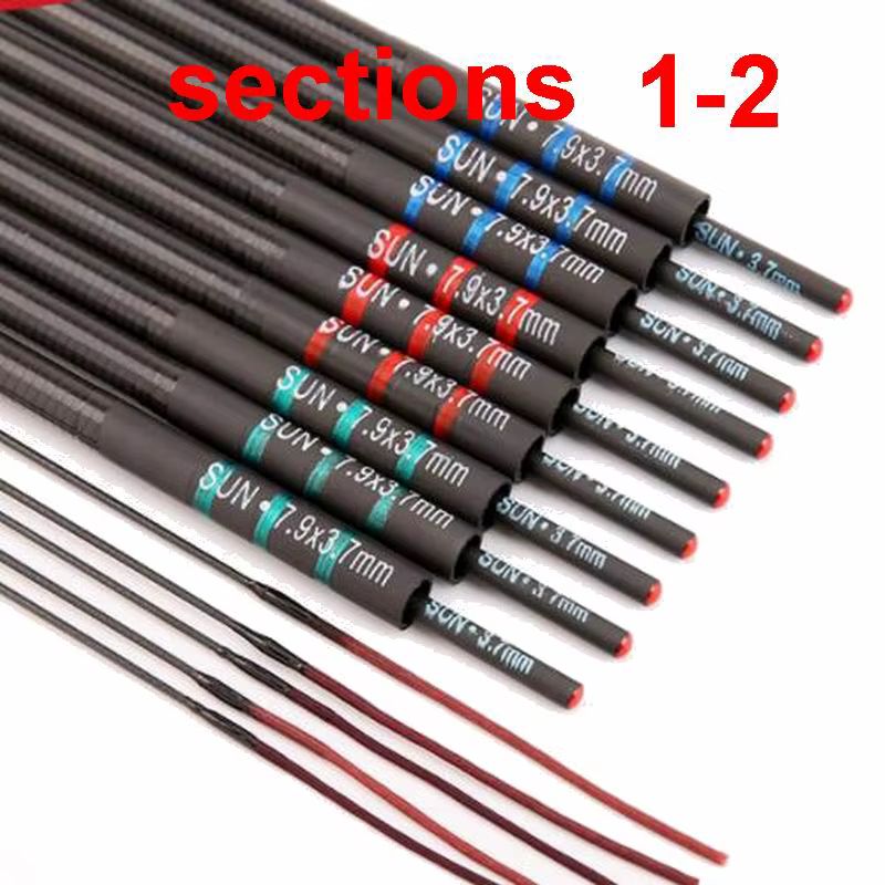 115 cm + 105 cm disponibles también.Contáctenos.7,4 y 3,5=7,4 mm + 3,5 mm, sección 2 diámetro exterior del trasero 7,4 mm, sección 1 (punta) diámetro exterior del trasero 3,5 mm.
