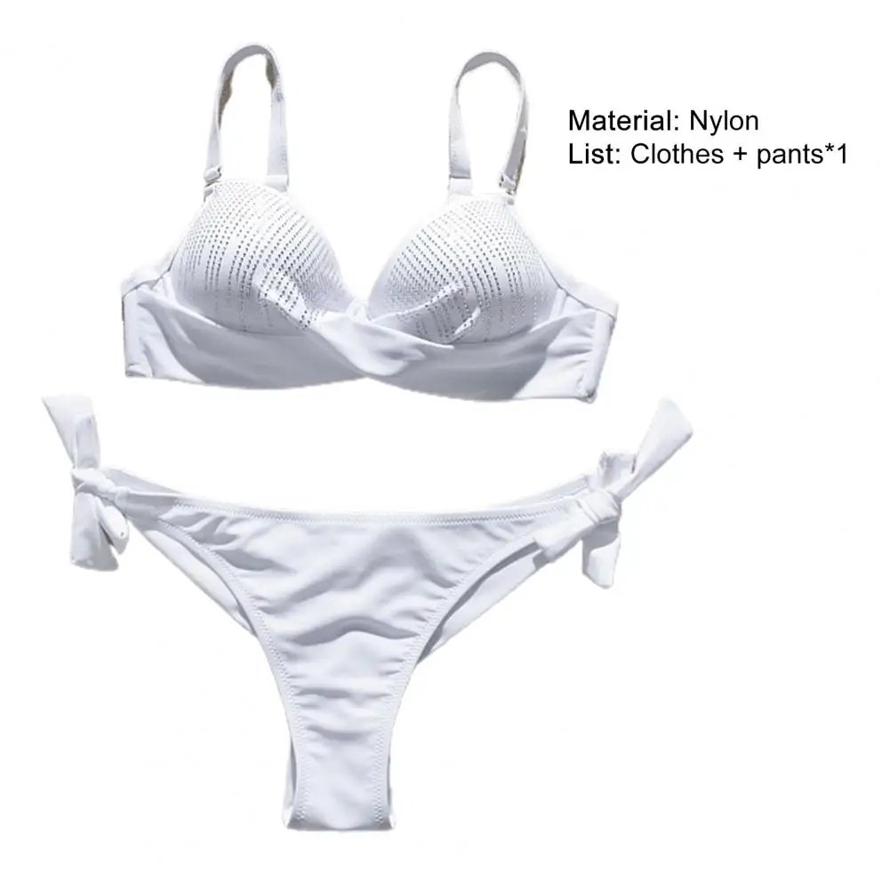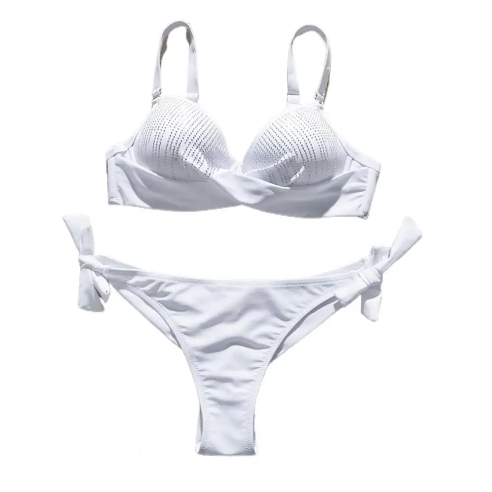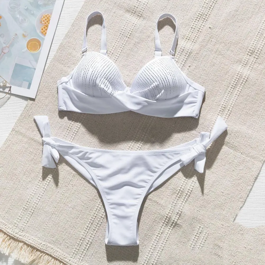 Conjunto de calzoncillos de Sujetador con relleno cruzado, vendaje lateral, decoración de diamantes de imitación, sujetador, calzoncillos de cintura alta, traje de baño para nadar