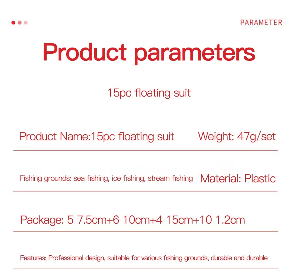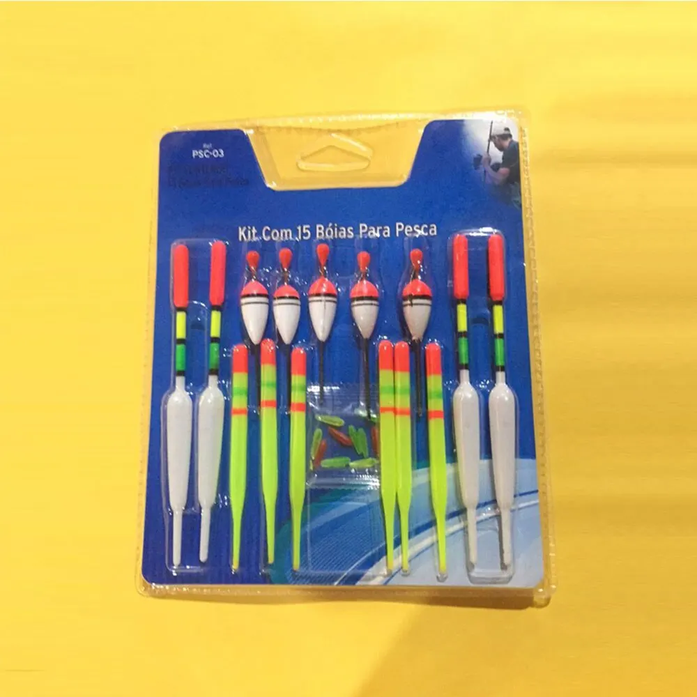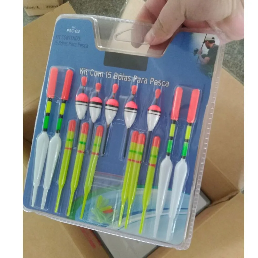 Artículo: 15 unids en 1 boya vertical flotadores de pesca boya flotante de pesca conjunto de tubo Bobber