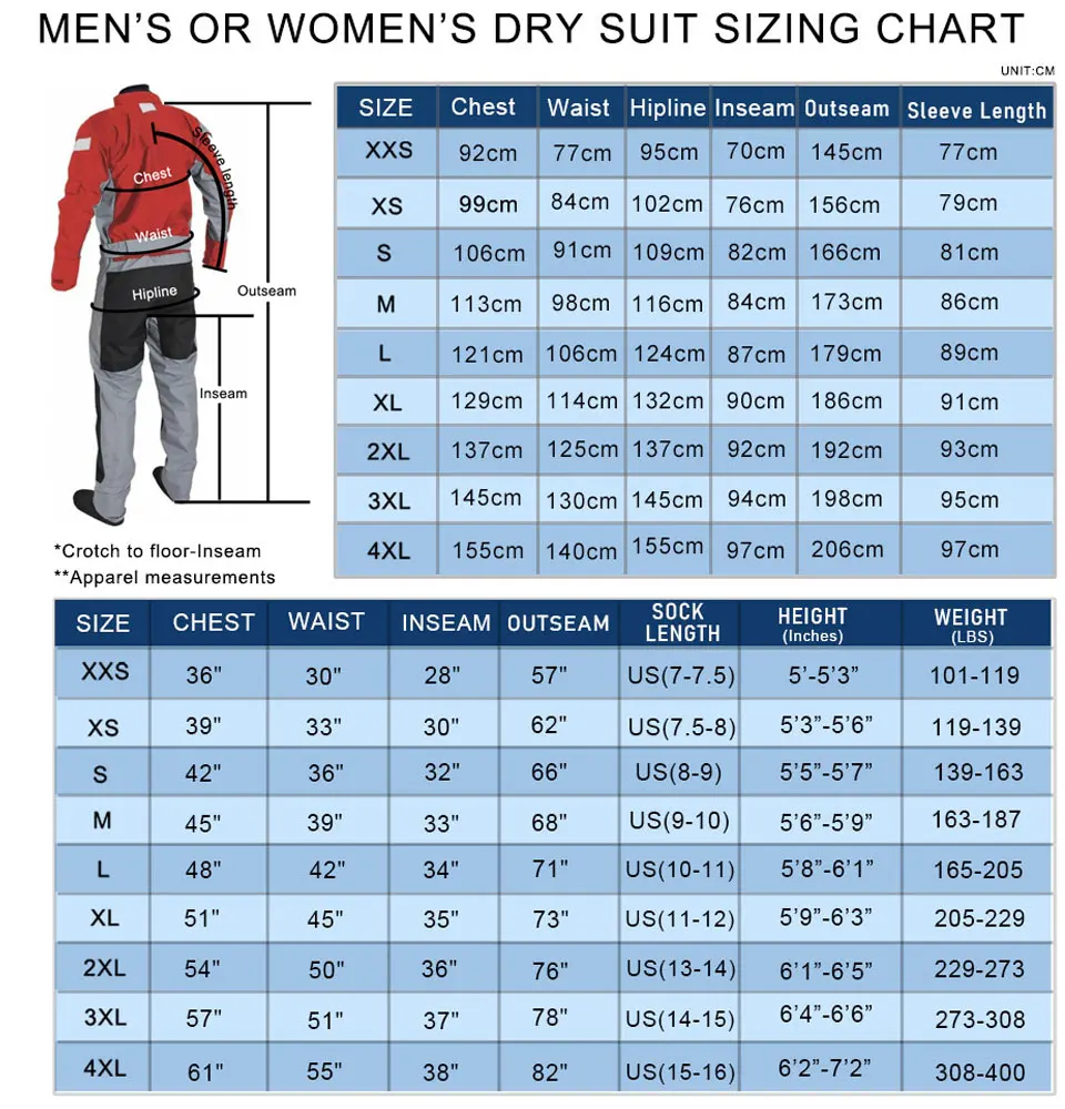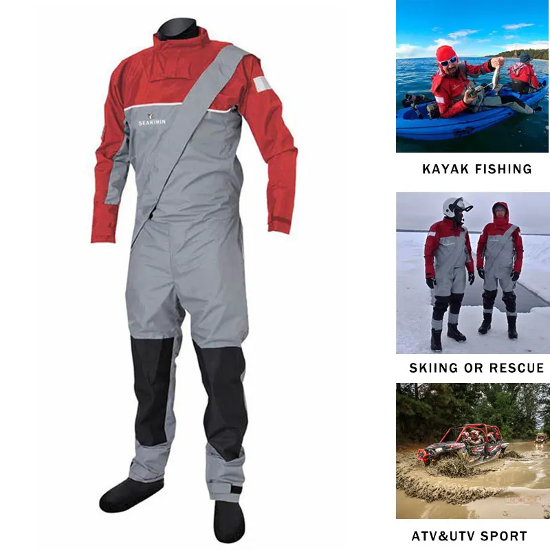 En lugar de juntas de látex, los modelos semisecos vienen con cómodos cierres de neopreno para la muñeca y el cuello, pero a costa de no ser completamente herméticos. El agua saldrá del cuello y la muñeca de neopreno Si nada en el agua. Si se utiliza para ATV y UTV o pesca en kayak, no se verá afectado.