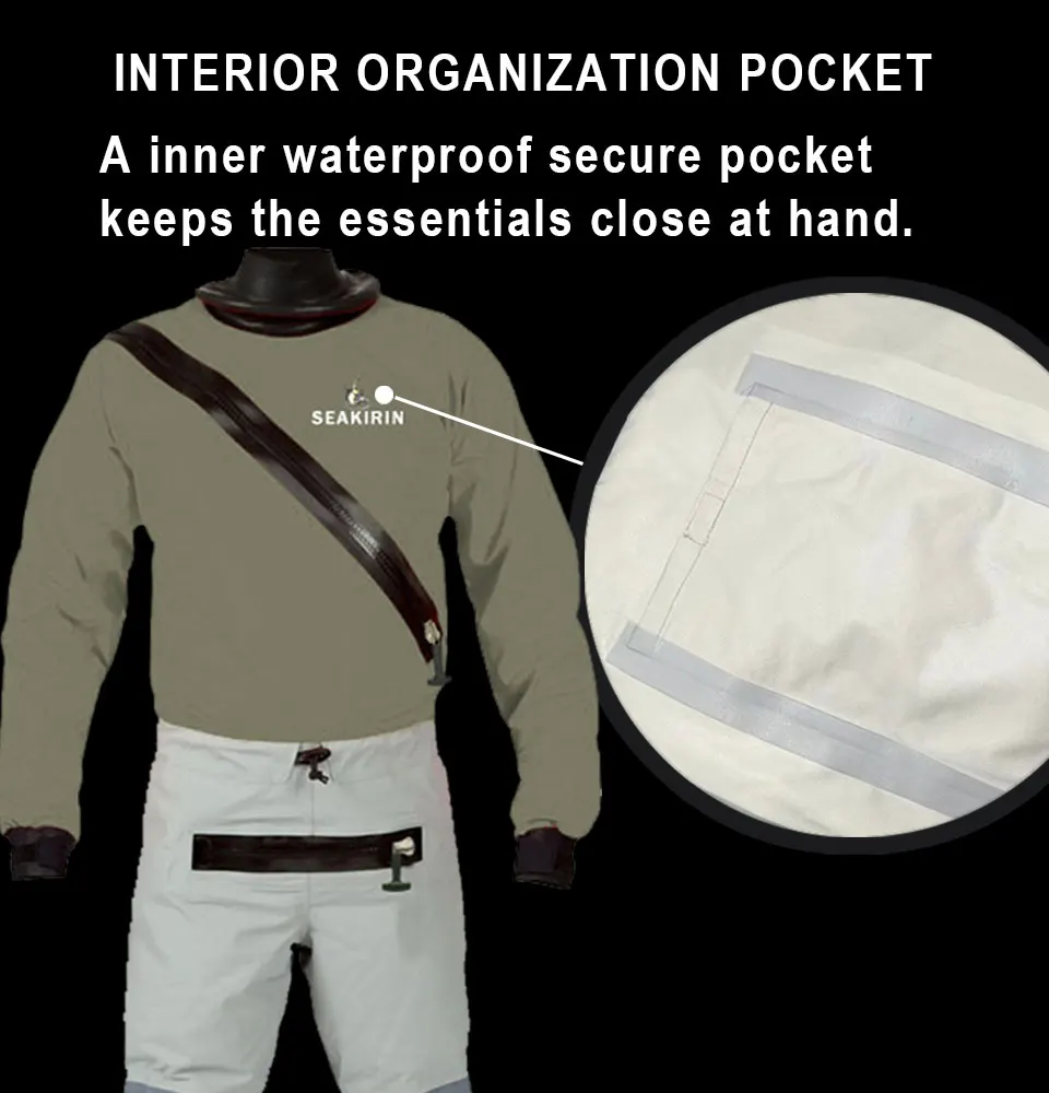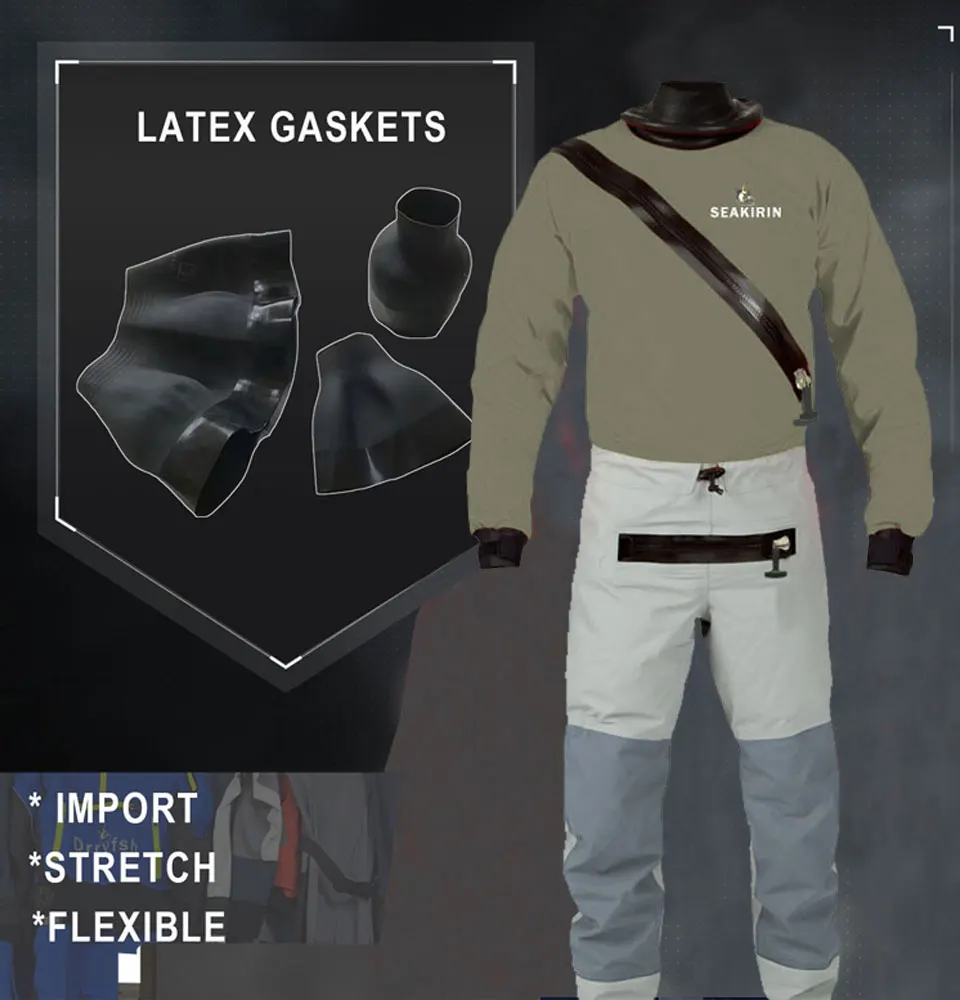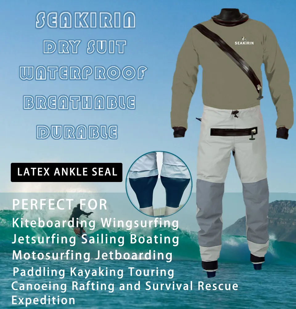 La membrana 4,0 patentada de SEAKIRIN es totalmente impermeable y transpirable, manteniéndonos secos en el agua a un precio más bajo que otros trajes secos con sello de tobillo en los mercados.