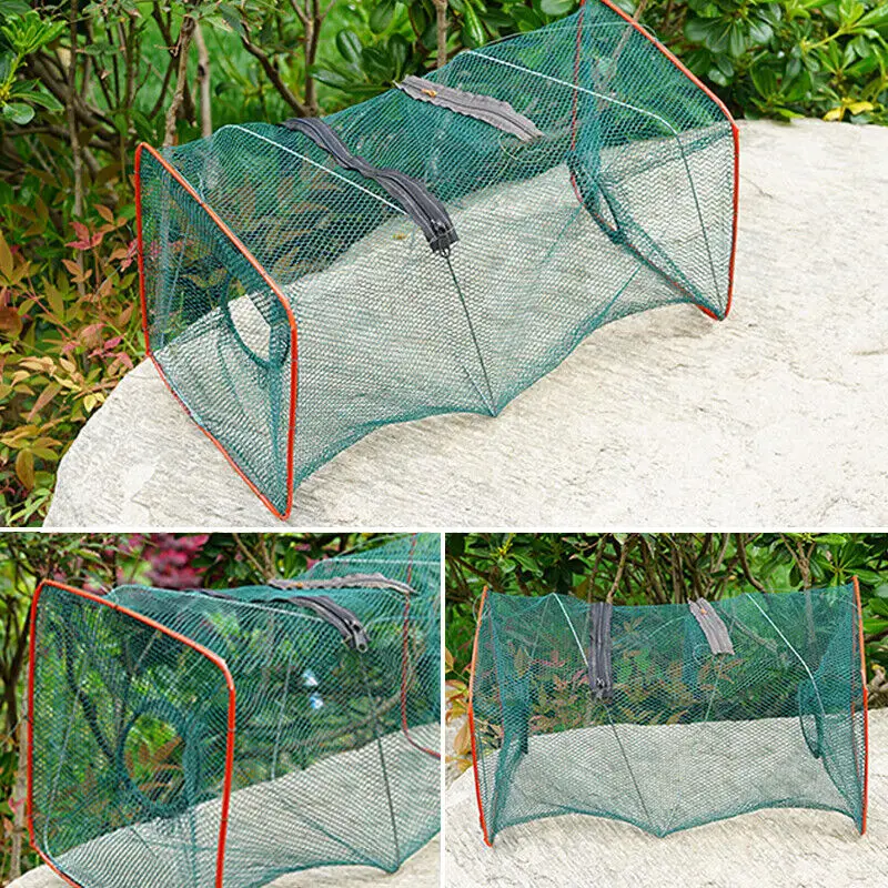 Trampa de cebo de pesca plegable de 2, red de pesca, jaula de inmersión fundida, cangrejo, pececillo, camarón Crawdad