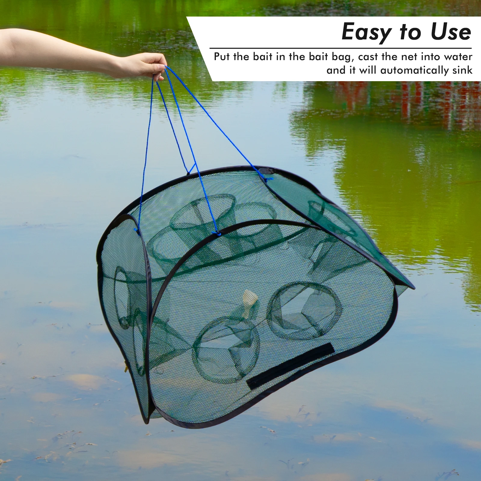 2.Diseño especial de cremallera: tiene un diseño de 9/13 agujeros, lo que facilita la captura de una variedad de presas, como camarones, cangrejos, pececillos, langostas y cangrejos en piscinas, ríos y mar poco profundo.Diseño especial de cremallera para sacar fácilmente el pez, el cangrejo y la langosta.