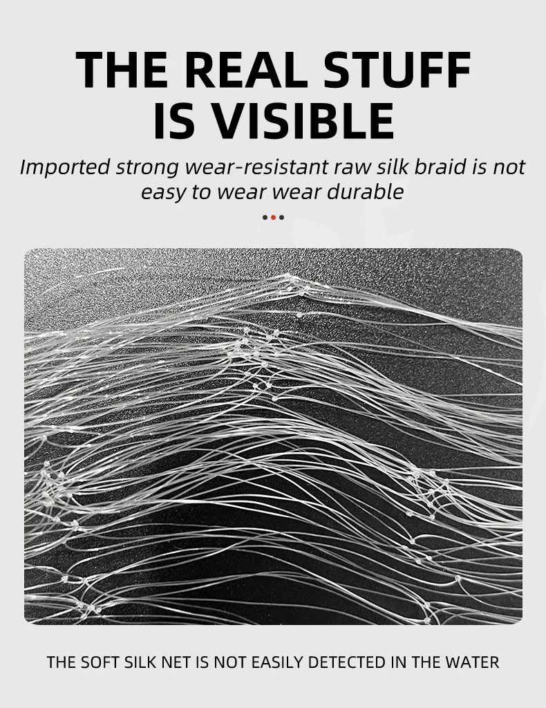 【Diseño de cuentas luminosas】:El diseño de las cuentas luminosas le permite pescar como de costumbre por la noche y puede informarle del estado de la red de pesca la primera vez, para que pueda responder a la red a tiempo.Las redes de pesca con cuentas luminosas pueden ser un accesorio muy útil para tu pesca nocturna.