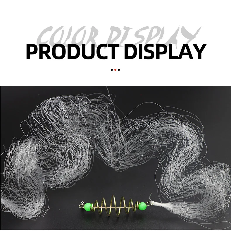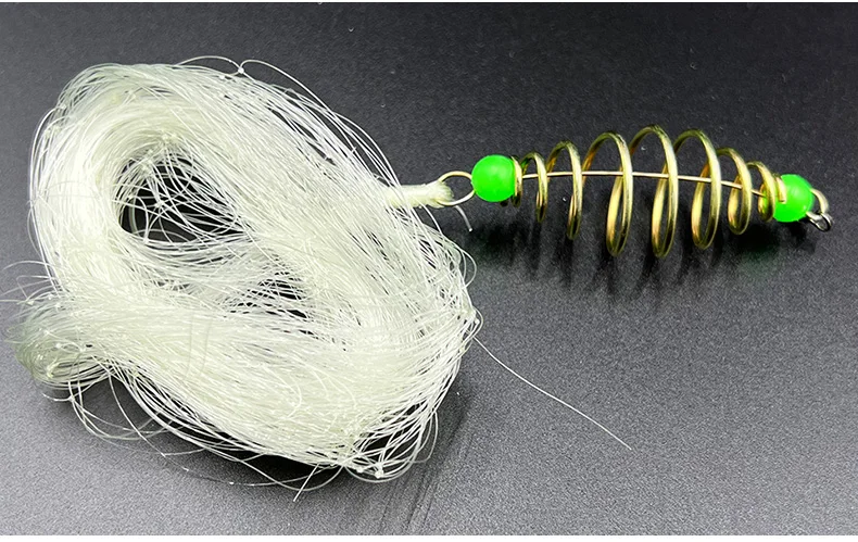 【Atrapa peces más grandes】:Pon tu cebo en el resorte de cobre.No apriete demasiado las redes de pesca, deje que las redes en el agua se mantengan sueltas, por lo que el efecto de pesca será mejor.Puede ayudarle a capturar peces más grandes.