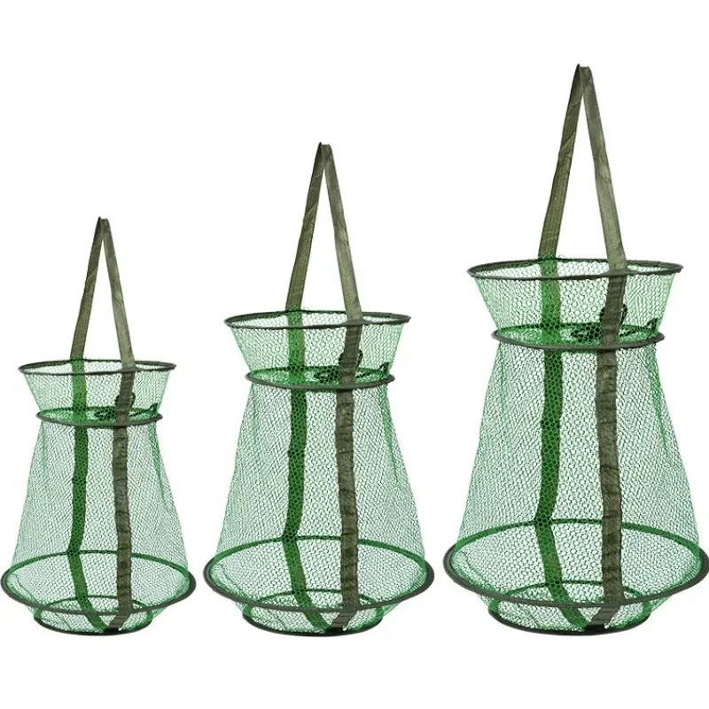 Trampa cesta de pescado con cordón, diseño de apertura, red de pesca plegable, jaula de red de pesca, cestas de peces para peces vivos