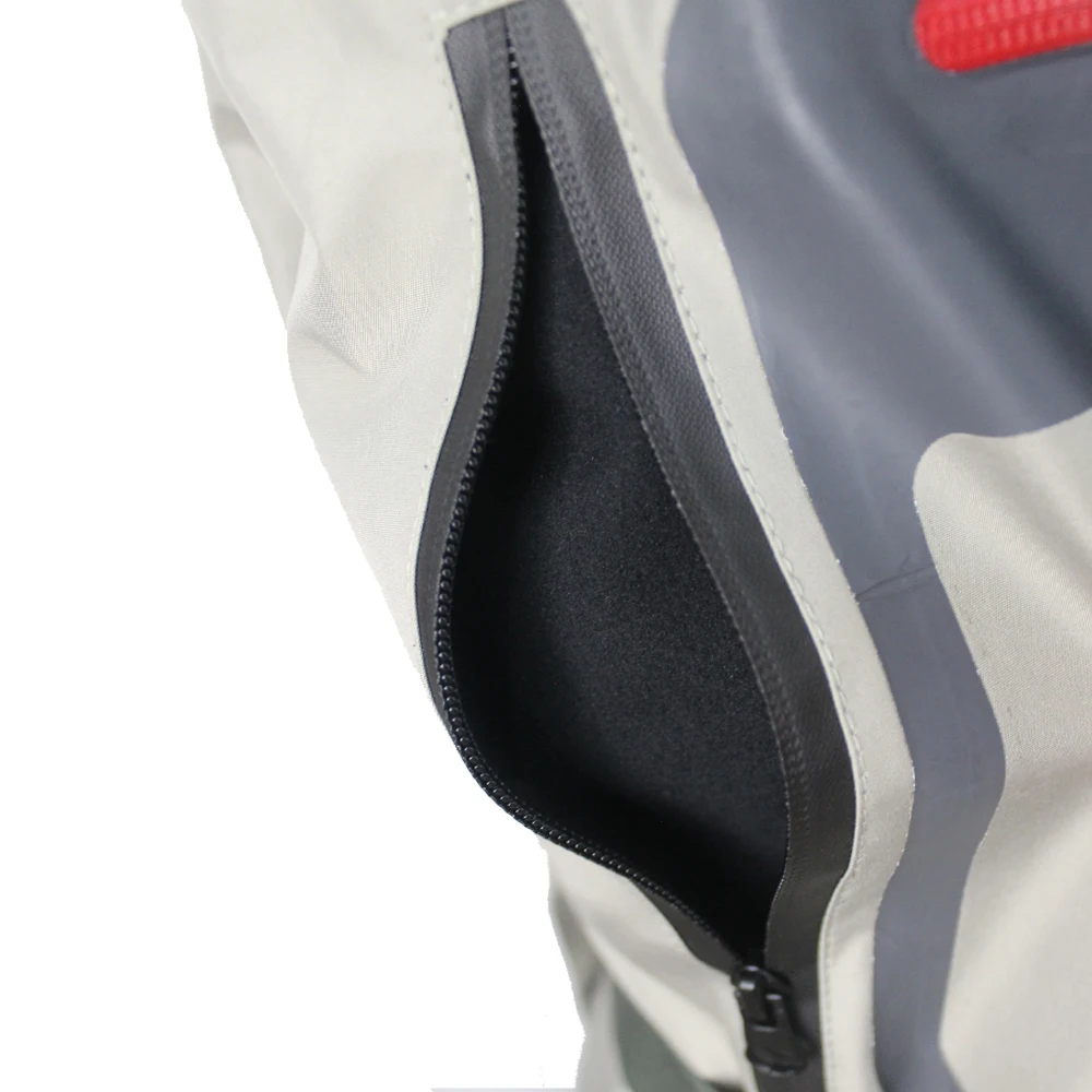 2. Bolsillo en el pecho con cremallera a prueba de salpicaduras3. Bolsillo envolvente con forro polar4. Cinturón de vadeo ajustable con hebilla de bloqueo de liberación rápida5. Protectores de grava adjuntos con ganchos de encaje integrales6. Tirantes ajustables con hebillas de bloqueo de liberación rápida7. Bolsillo DE SEGURIDAD abatible con cremalleraBotines de neopreno con doble cinta de 8,4mm
