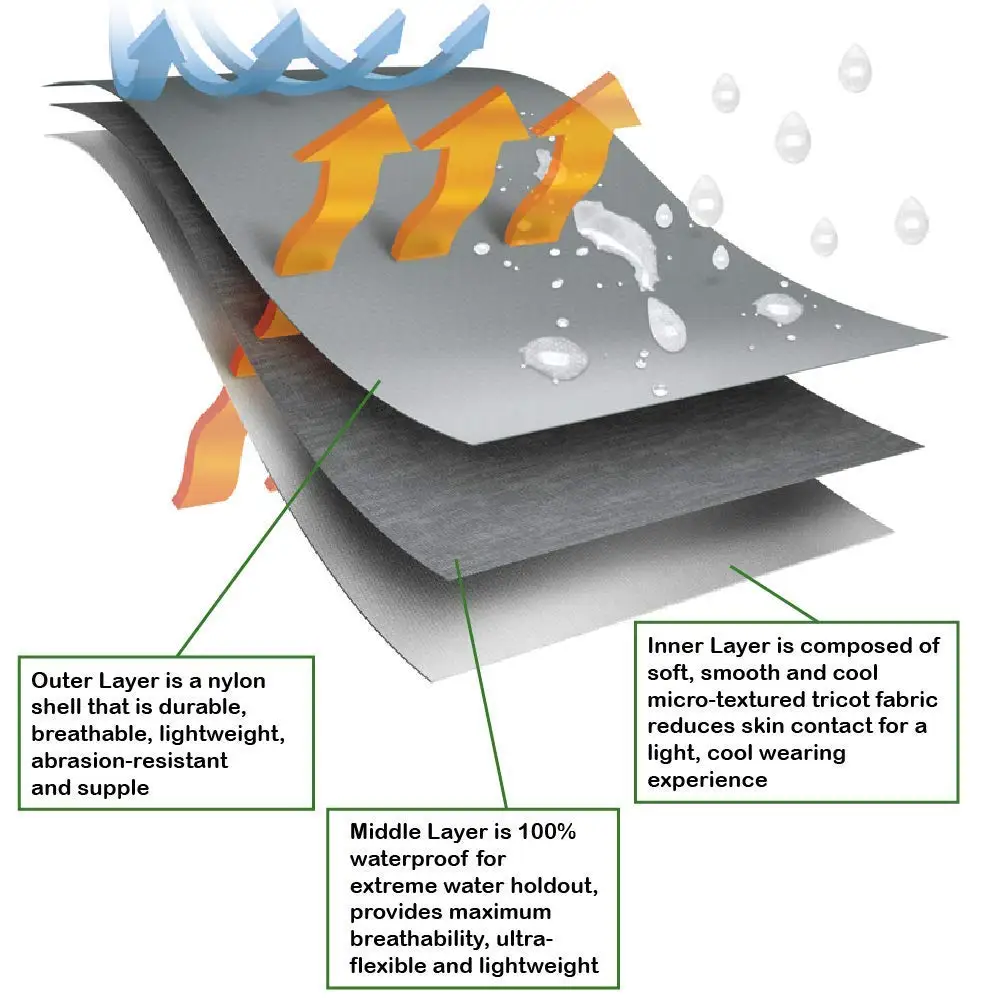 1. Fabricado con tejido TRICOT y costuras con cinta Gore