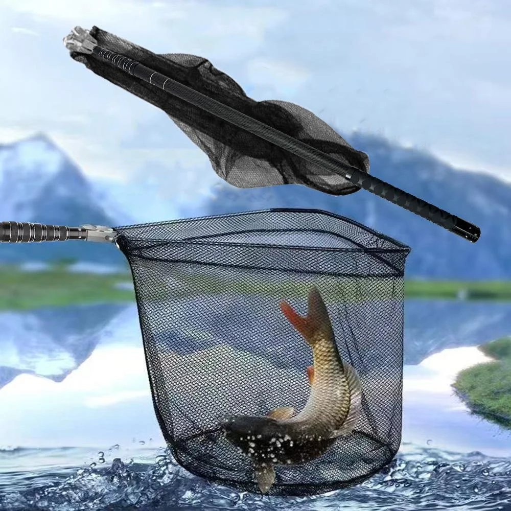 Triangular Collapsible Fishing Net Carbon Wear Resistance Fishing Landing Net Shrimp Cage Nylon Mesh Catch Fish Trap 3.0m/4.0m