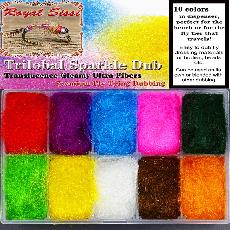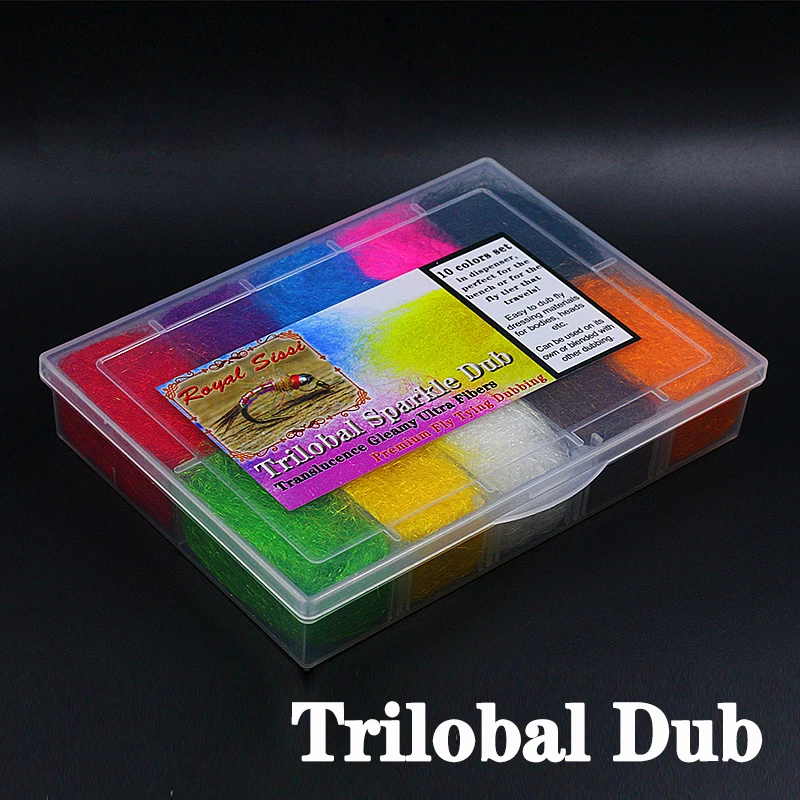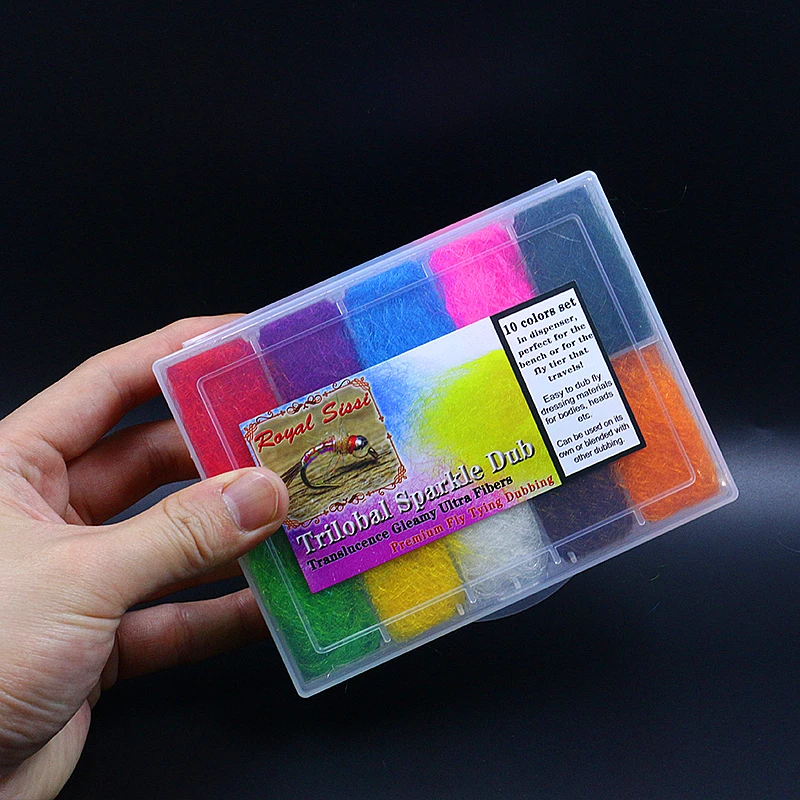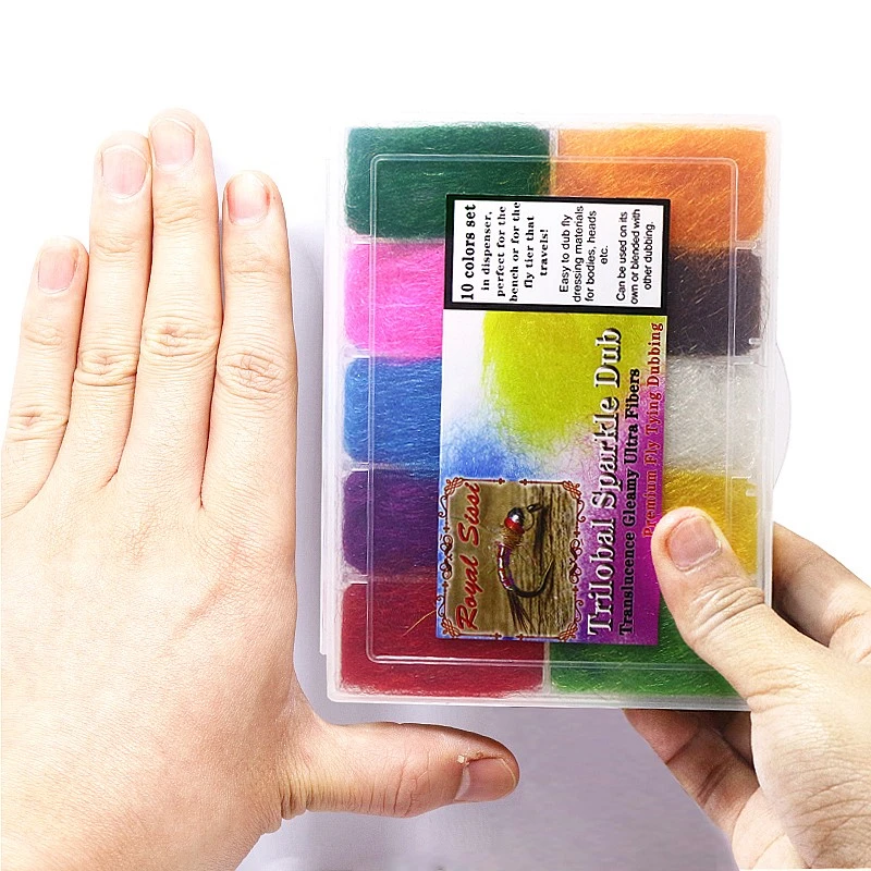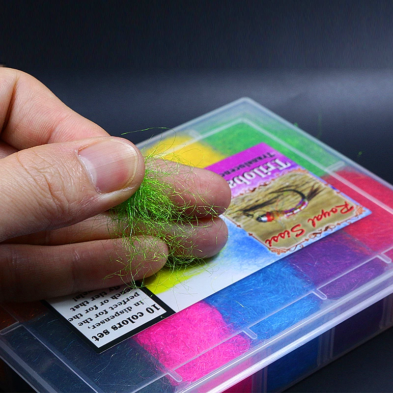10 colores/caja atado de moscas trilobal brillo doblaje dispensador translucidez mosca brillante doblaje salmón Steelhead Fly patrón Fly Dub