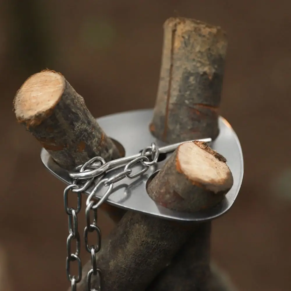 Easy to Use: The camping tripod plate has 3 pieces equivalent holes, just needs three stick or rod to build your owns firm BBQ tripod. Strong and Portable: The overall volume of this camping tripod board is small and lightweight. When you go out for camping, just put it in your bag.
