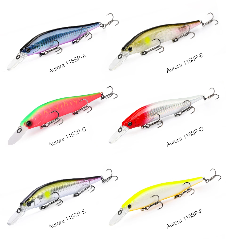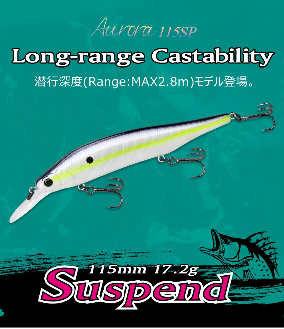Ya sea que ataques peces de excrementos repentinos, aguas altas, acantilados o embarcaciones, AURORA 115SP se acerca a las aguas marinas hambrientas navegando en aguas más profundas con un impacto natural superando el del cebo vivo real.