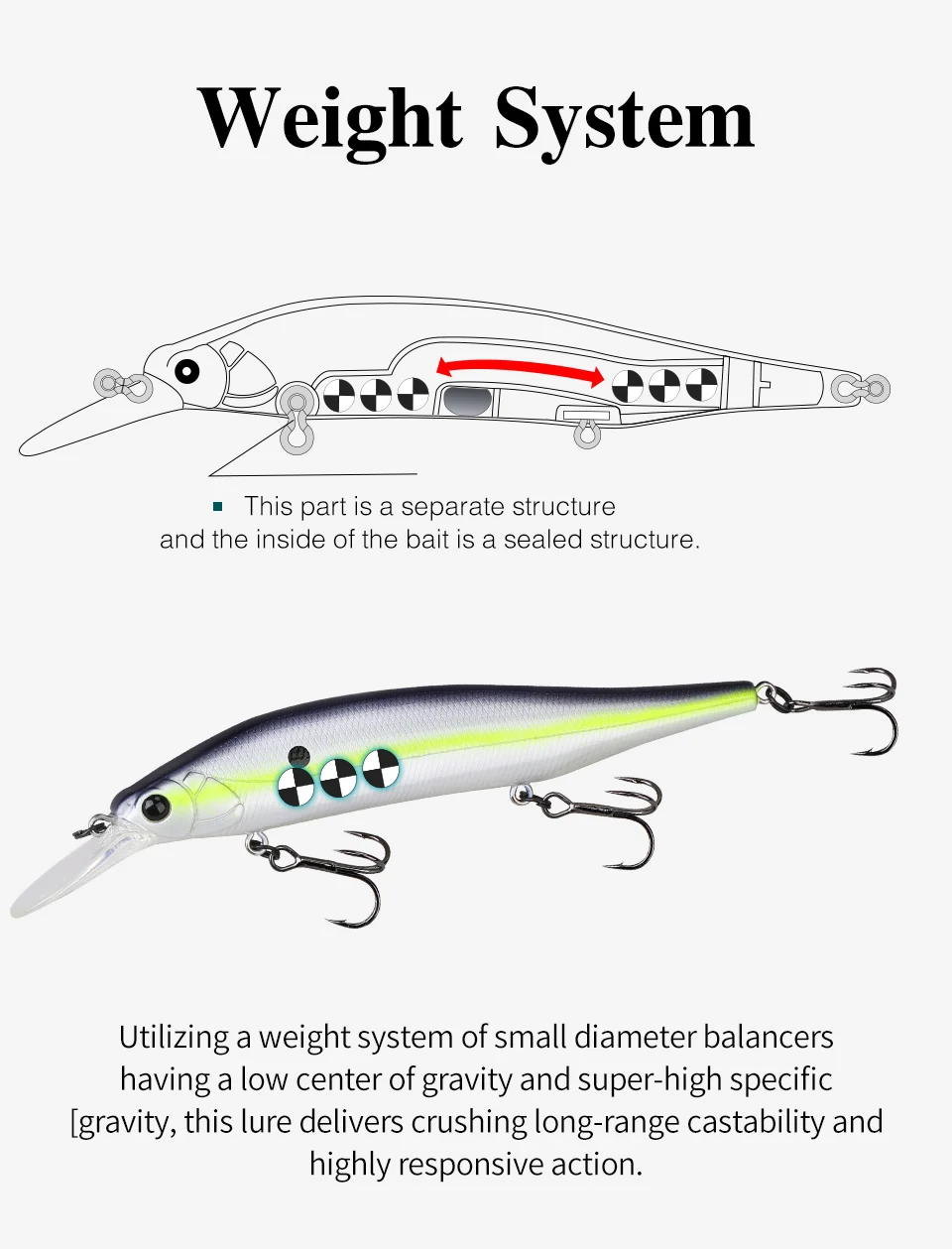 AURORA 115SP ofrece lo último en "movimiento similar al cebo", produciendo atractivas dinámicas y fuertes vibraciones.