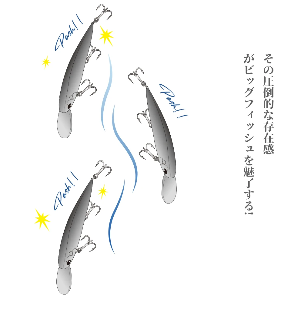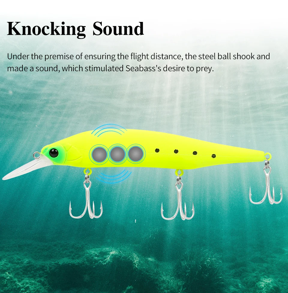 Bajo la premisa de garantizar la distancia de vuelo, la bola de acero tiembla y emite un sonido que estimuló el deseo de presa de Seabass.