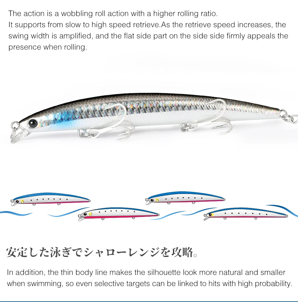 La serie 125F fue desarrollada como un modelo delgado de larga distancia, con la lanzamiento como máxima prioridad.Es un modelo básico que se puede utilizar en una amplia gama de locales (surf, estuarios, fuera de las rocas, etc.).