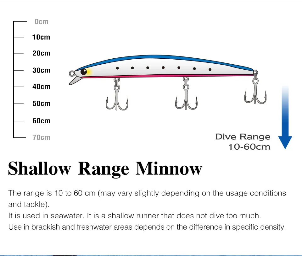 2.Tipo: Minnow de flatación delgado de rango poco profundo de fundición ultralarga