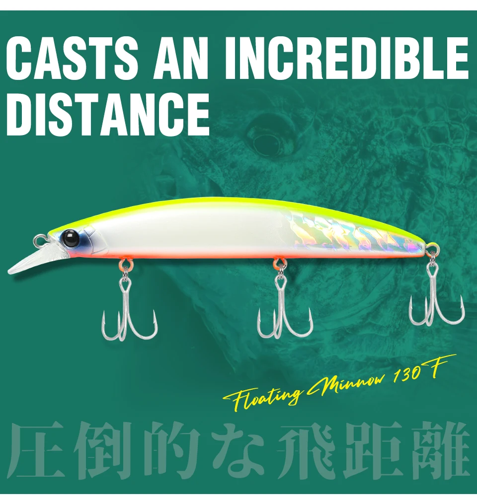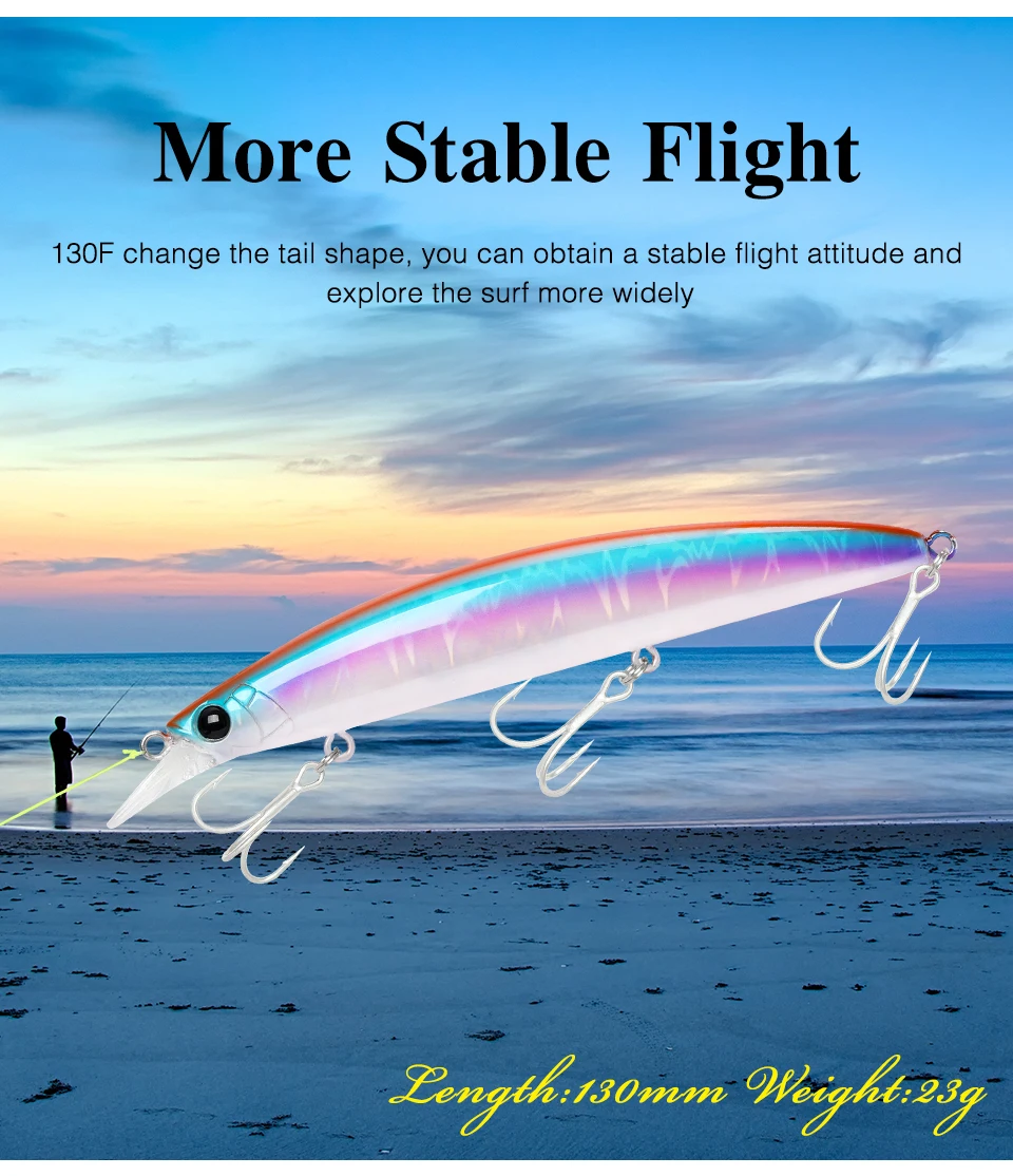 TSURINOYA 130F Flotante Minnow Pesca Señuelo grande 130mm 23g TWINKLE DW111 Long Casting Sea Bass Flounder Cebo duro artificial