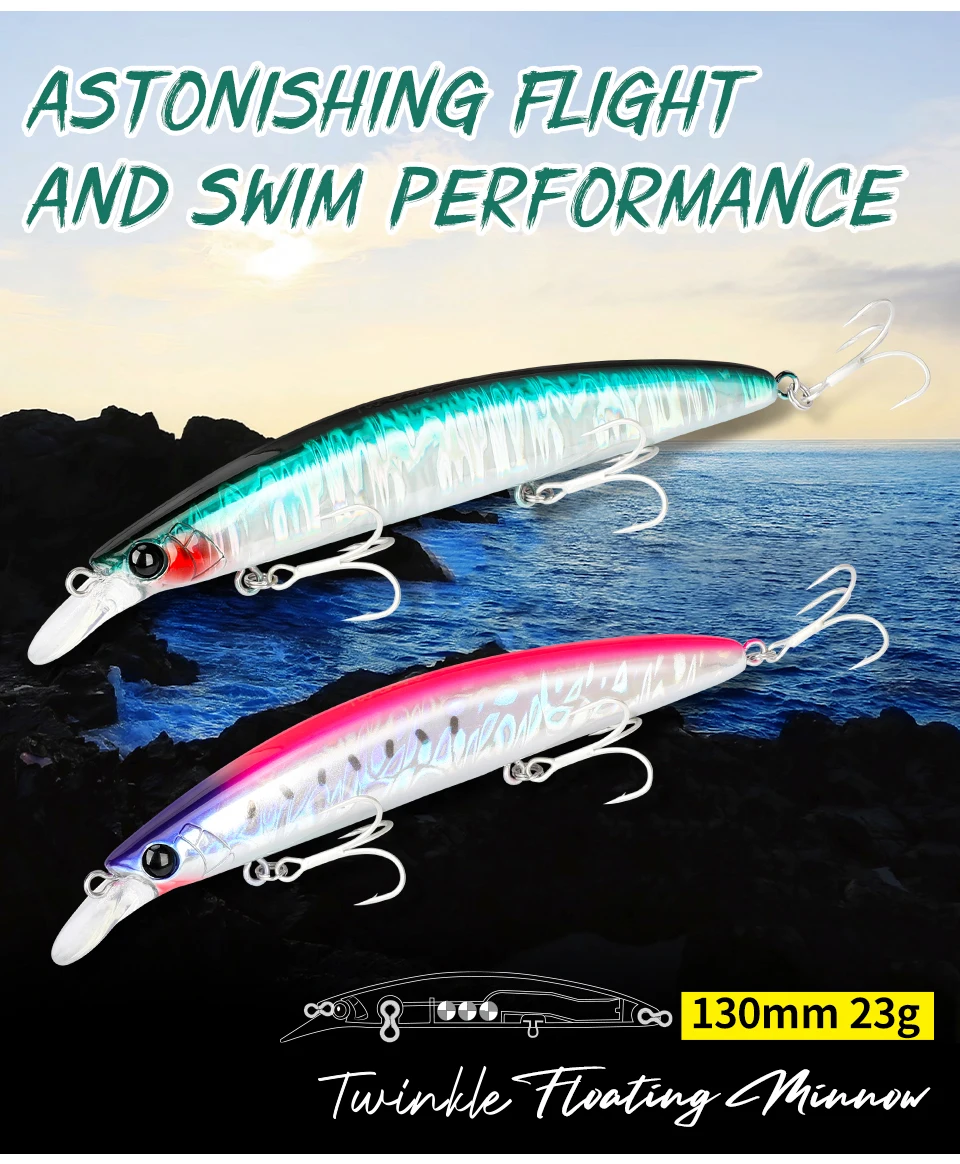 TSURINOYA 130mm 23g Long Casting Floating Minnow 130F Sea Fishing Lure TWINKLE DW111 Flounder Sea Bass Artificial Hard Baits