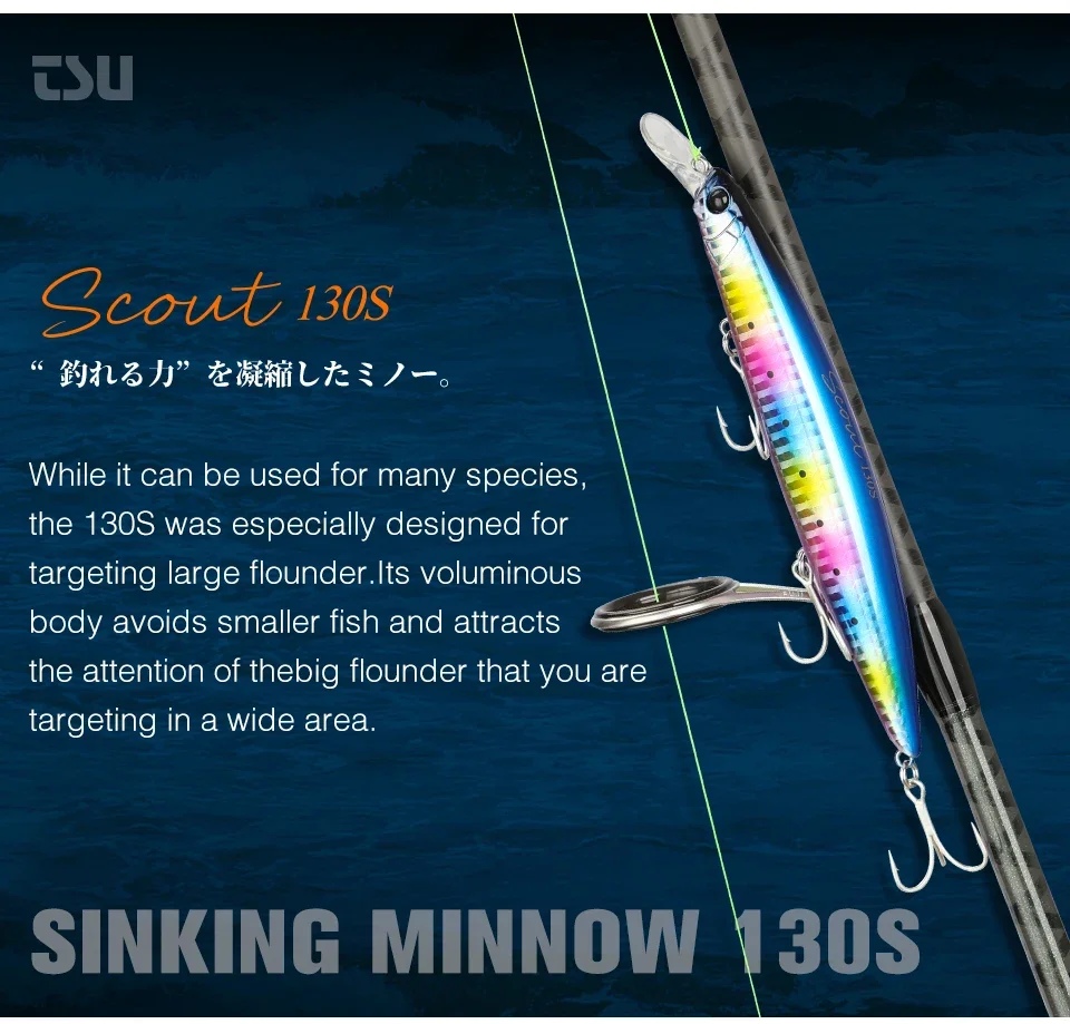 TSURINOYA 130S lanzamiento largo hundido Minnow SCOUT 130mm 24g platija señuelo de pesca de mar Artificial agua salada cebo duro grande