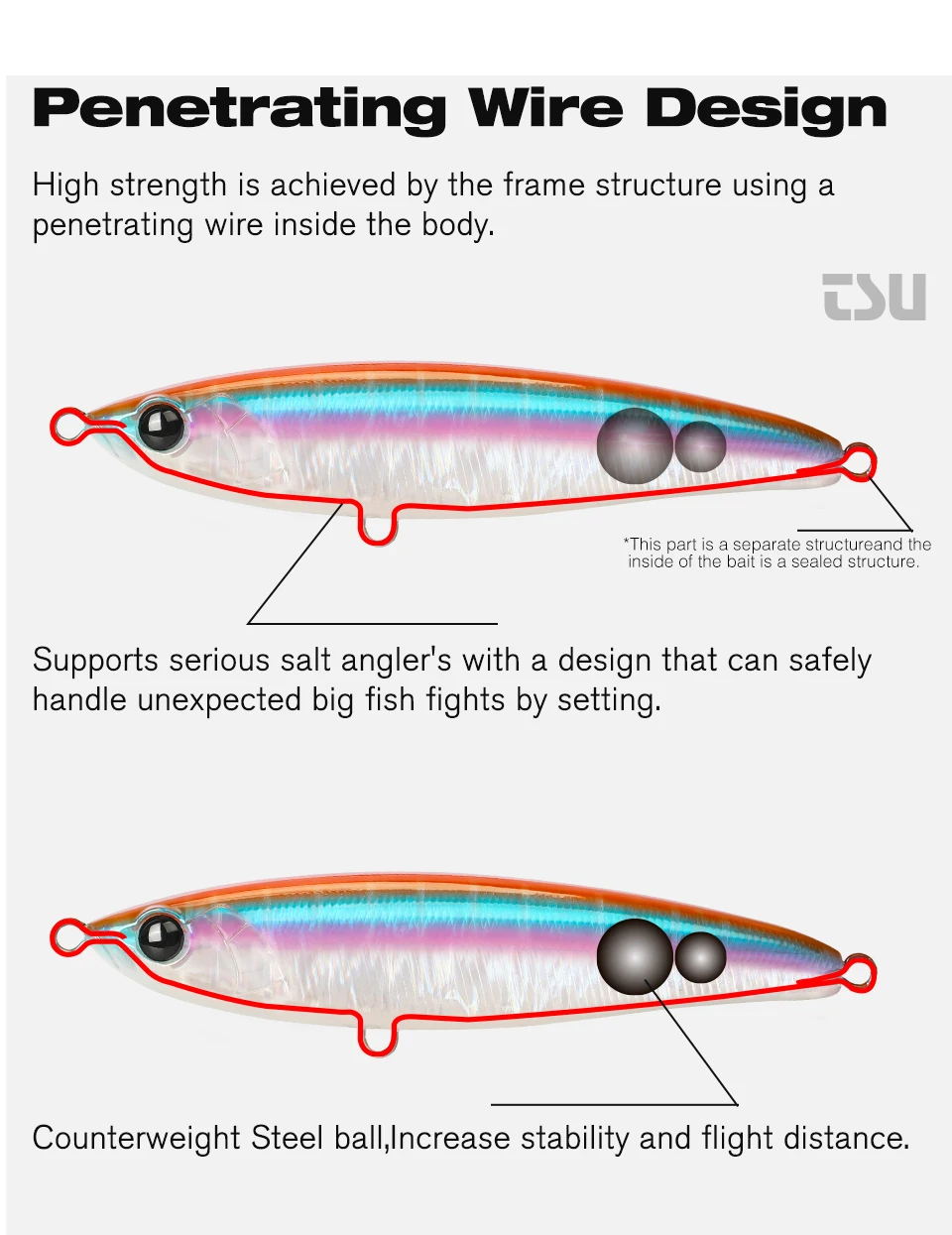 1. The highest wave motion is generated by the fat body of the "FANATIC" and is effective in situations where we fish in deep areas or migratory fish are dispersed over a wide area.
