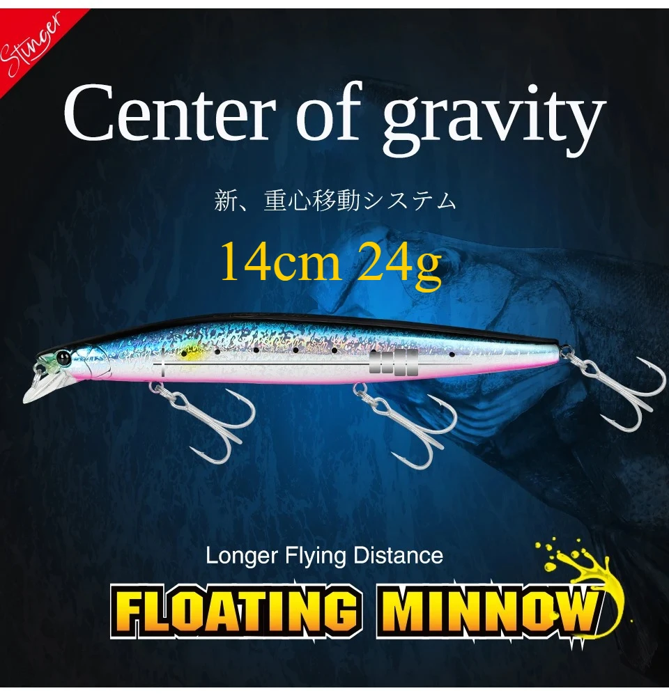 TSURINOYA 140F lanzamiento ultralargo flotante Minnow STINGER 140mm 24g Artificial gran cebo duro peso señuelo de pesca de mar
