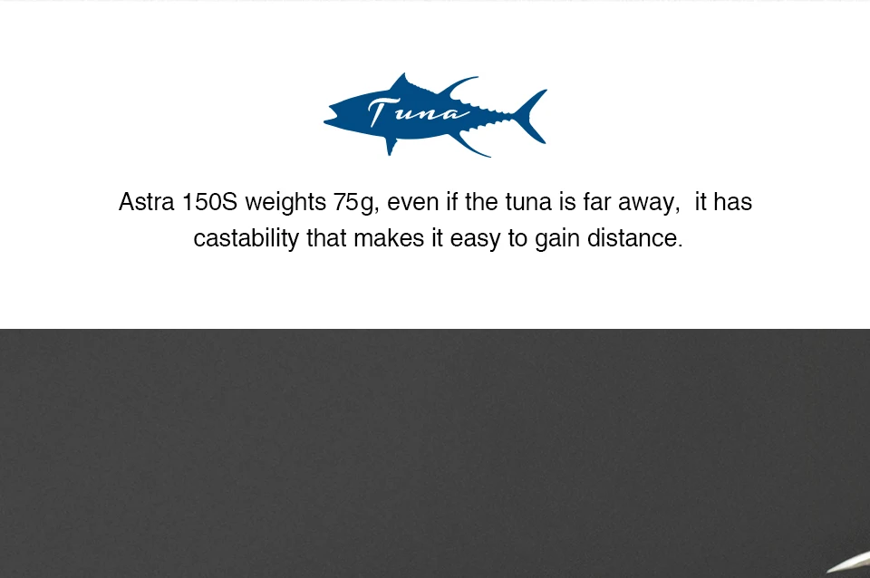 150S, una configuración de caída lenta que no se hunde demasiado rápido.El señuelo adopta un diseño ligeramente equilibrado en el centro trasero, que produce una gran vibración de caída al caer, atrayendo firmemente la atención del atún.