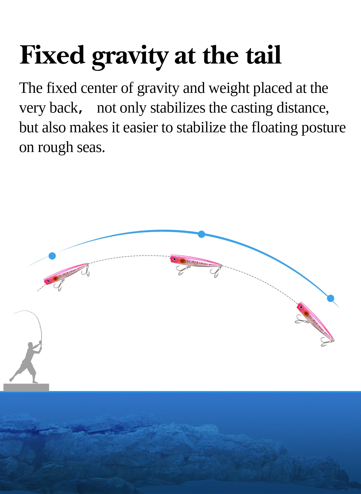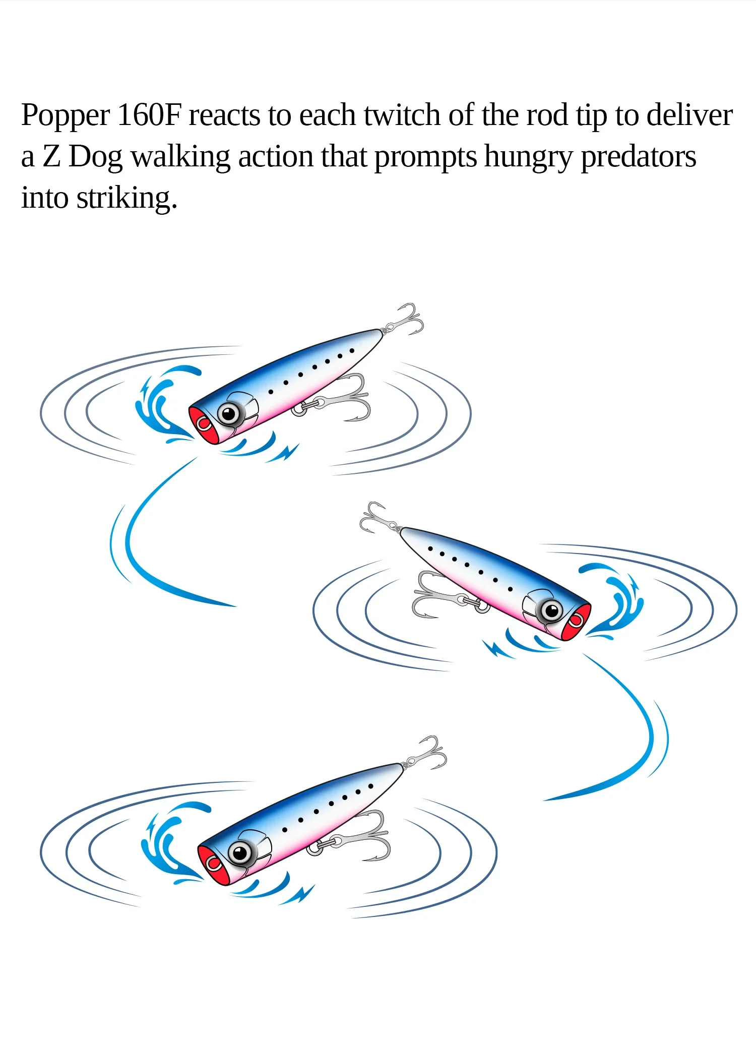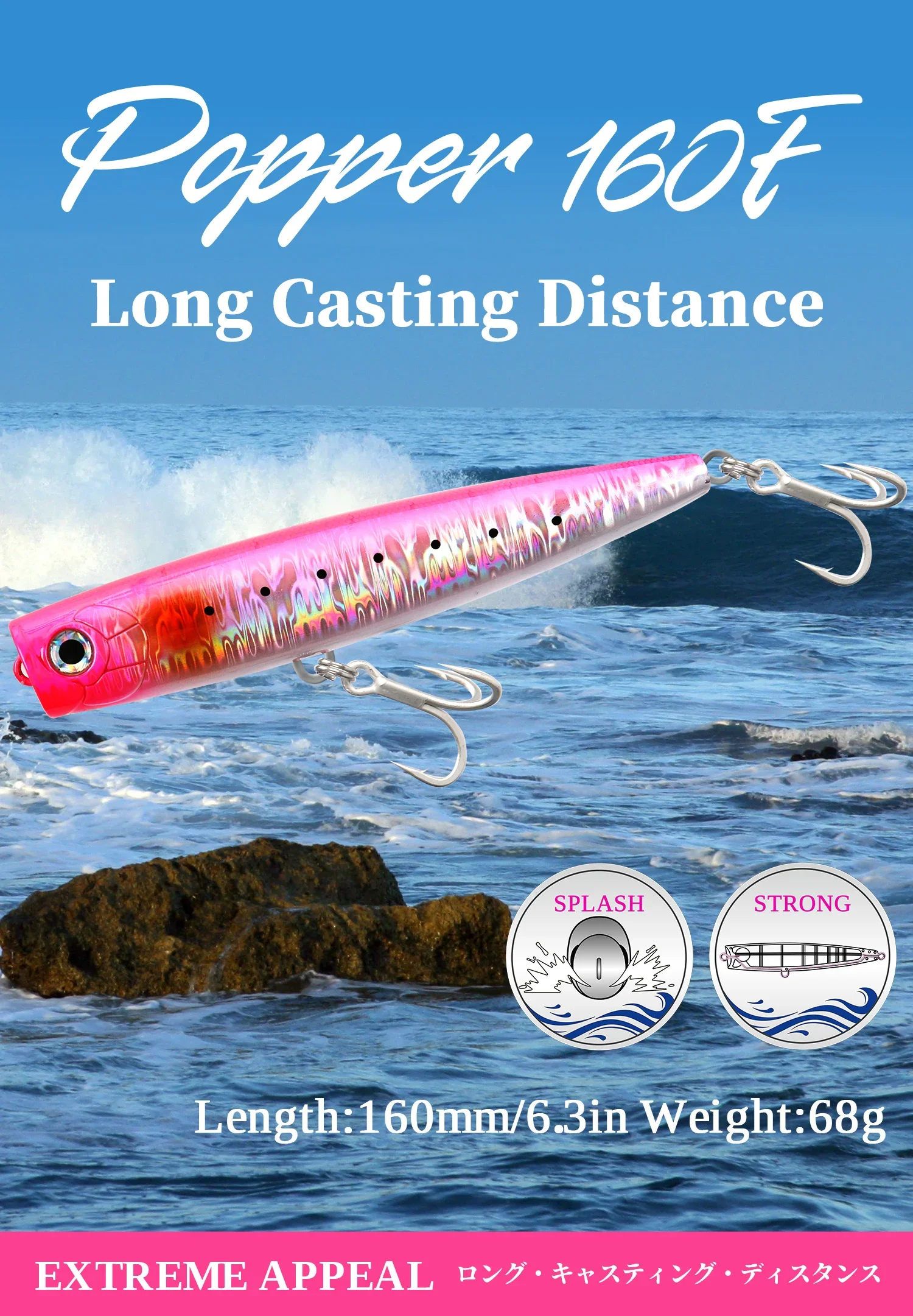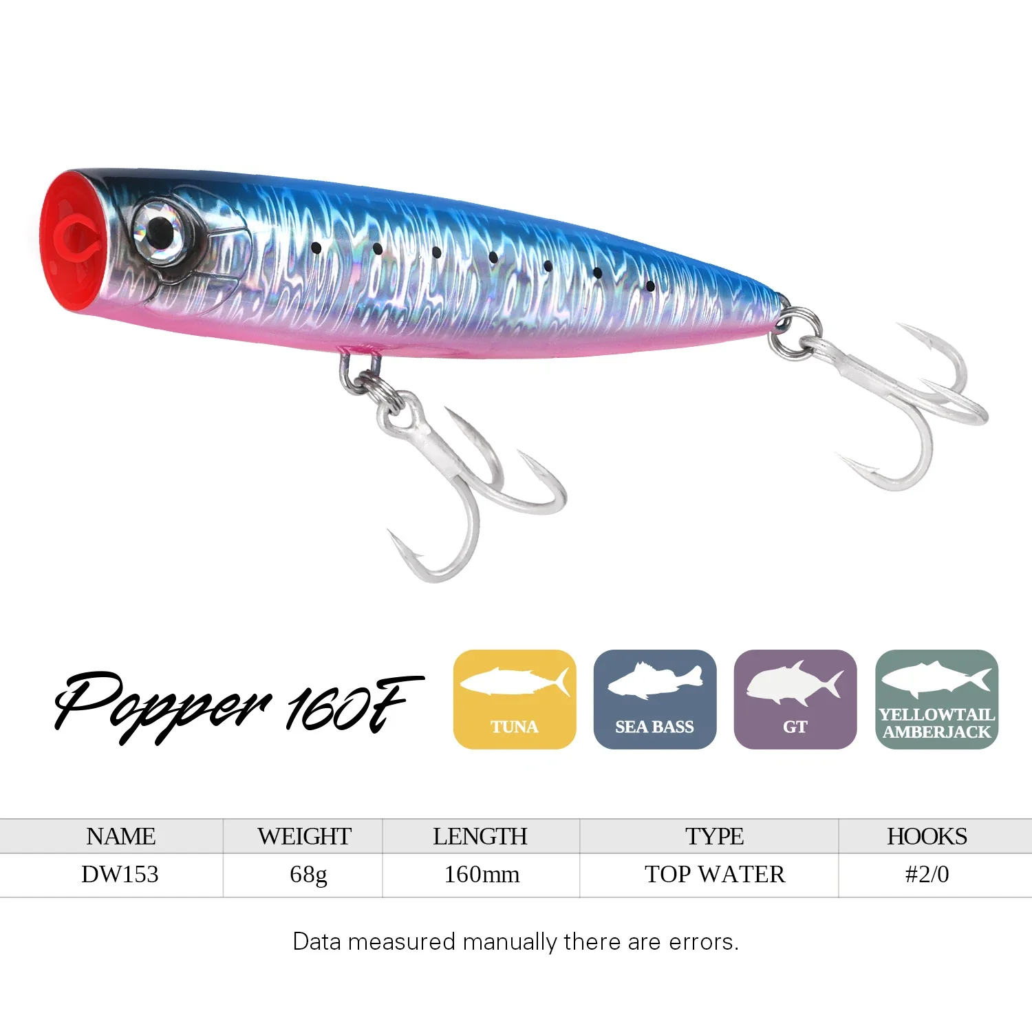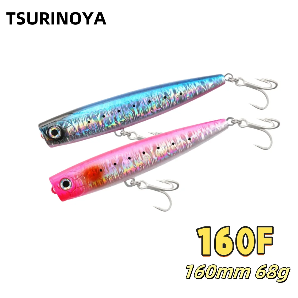TSURINOYA 160F señuelo de pesca de agua salada Topwater Popper 160mm 68g cebo de curricán para GT barco cebos duros anzuelos de agua de mar de fundición larga