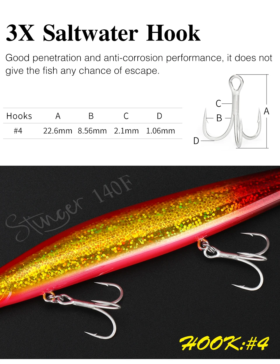 6.Anzuelos de agua salada 3X, buena penetración y rendimiento anticorrosión, no da al pez ninguna posibilidad de escapar.