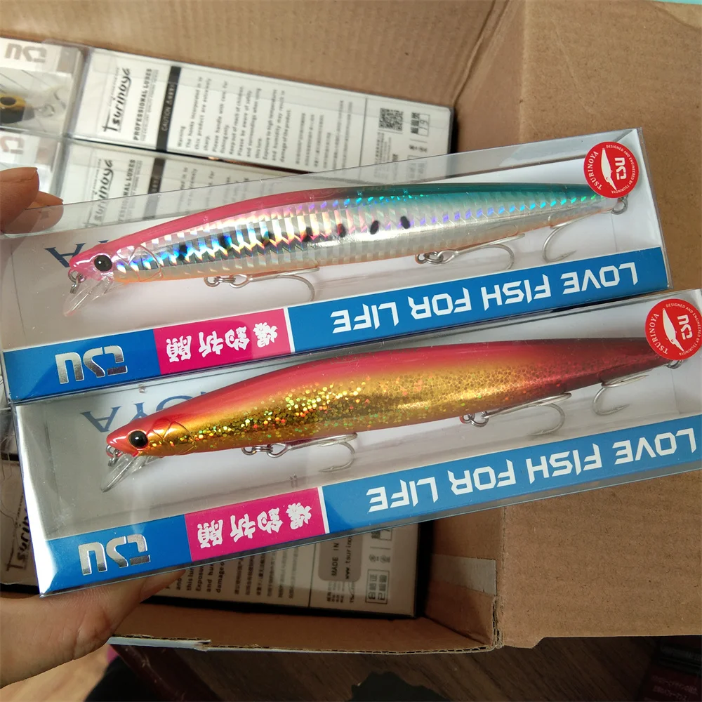 TSURINOYA Minnow flotante de fundición ultralarga 140F STINGER 140mm 24g señuelo de pesca de lanzamiento largo barata cebos duros de agua salada