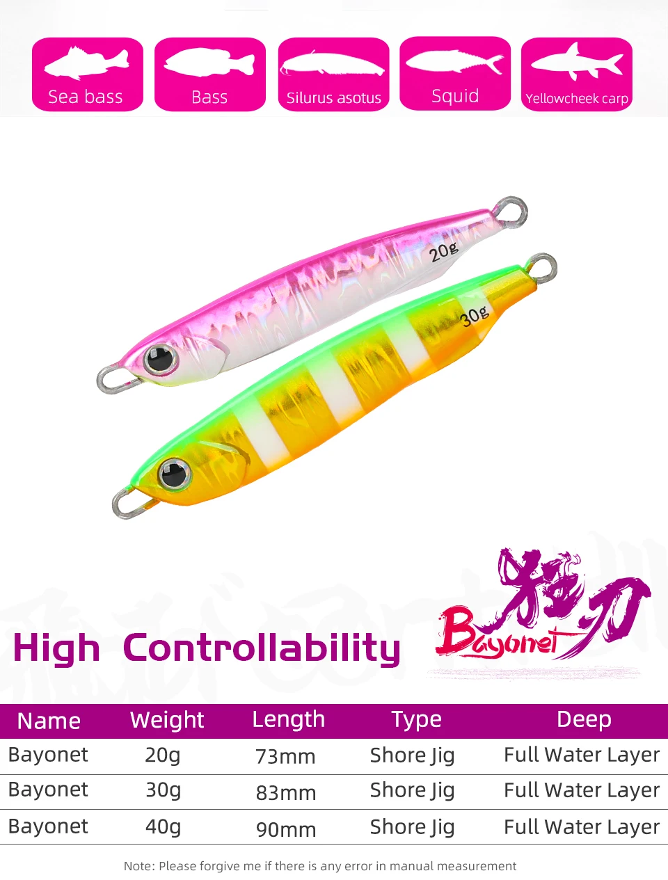 TSURINOYA 20g 30g 40g pesca costera señuelo de Jigging de Metal bayoneta plantilla de fundición larga señuelo de pesca buceo profundo cebo duro de plomo de invierno