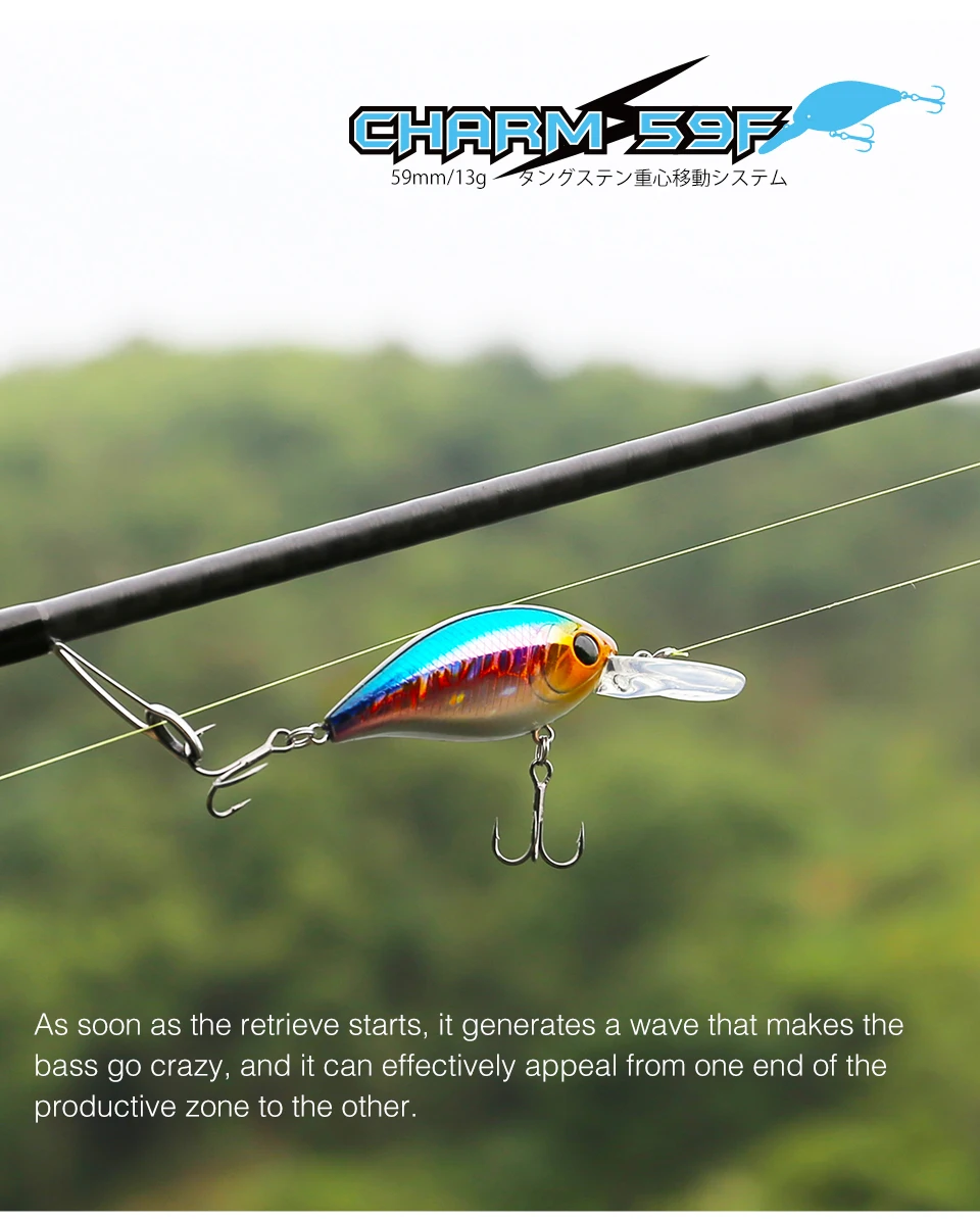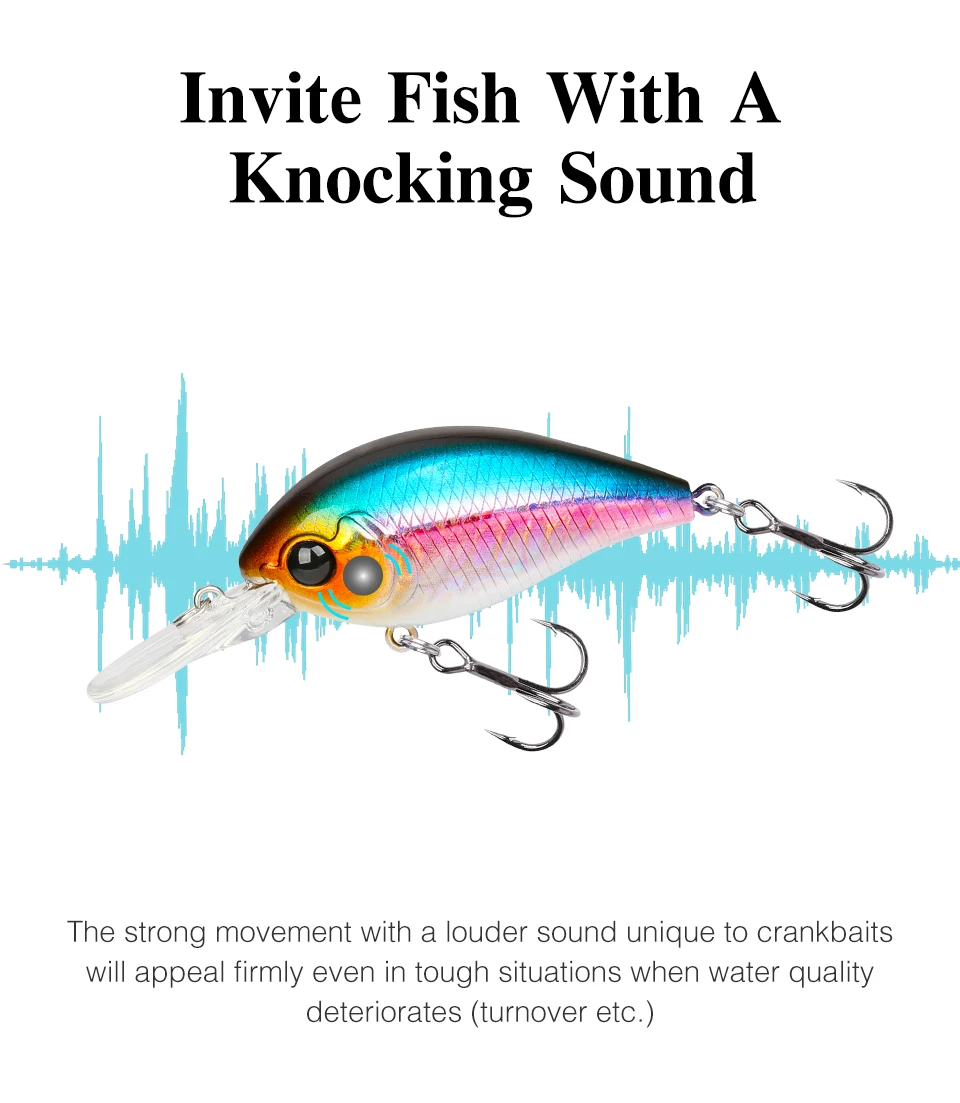 El fuerte movimiento con un sonido más fuerte, exclusivo de los crankbaits atraerá firmemente incluso en situaciones difíciles cuando la calidad del agua se deteriora (girar, etc.)