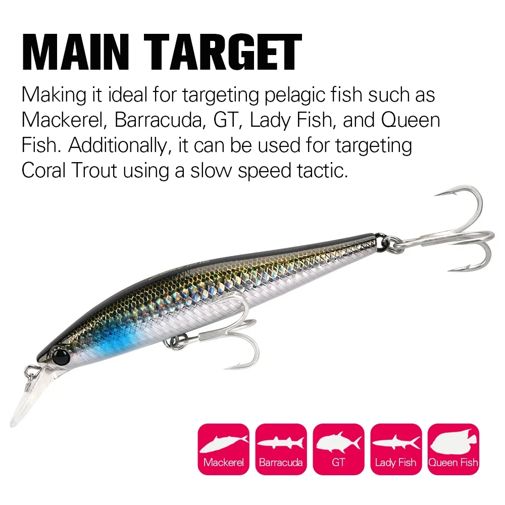 TSURINOYA 4 Uds 125mm 50g hundimiento Minnow señuelo de pesca LANCE pesca en el mar agua salada cebo duro barco aparejos atún caballa GT
