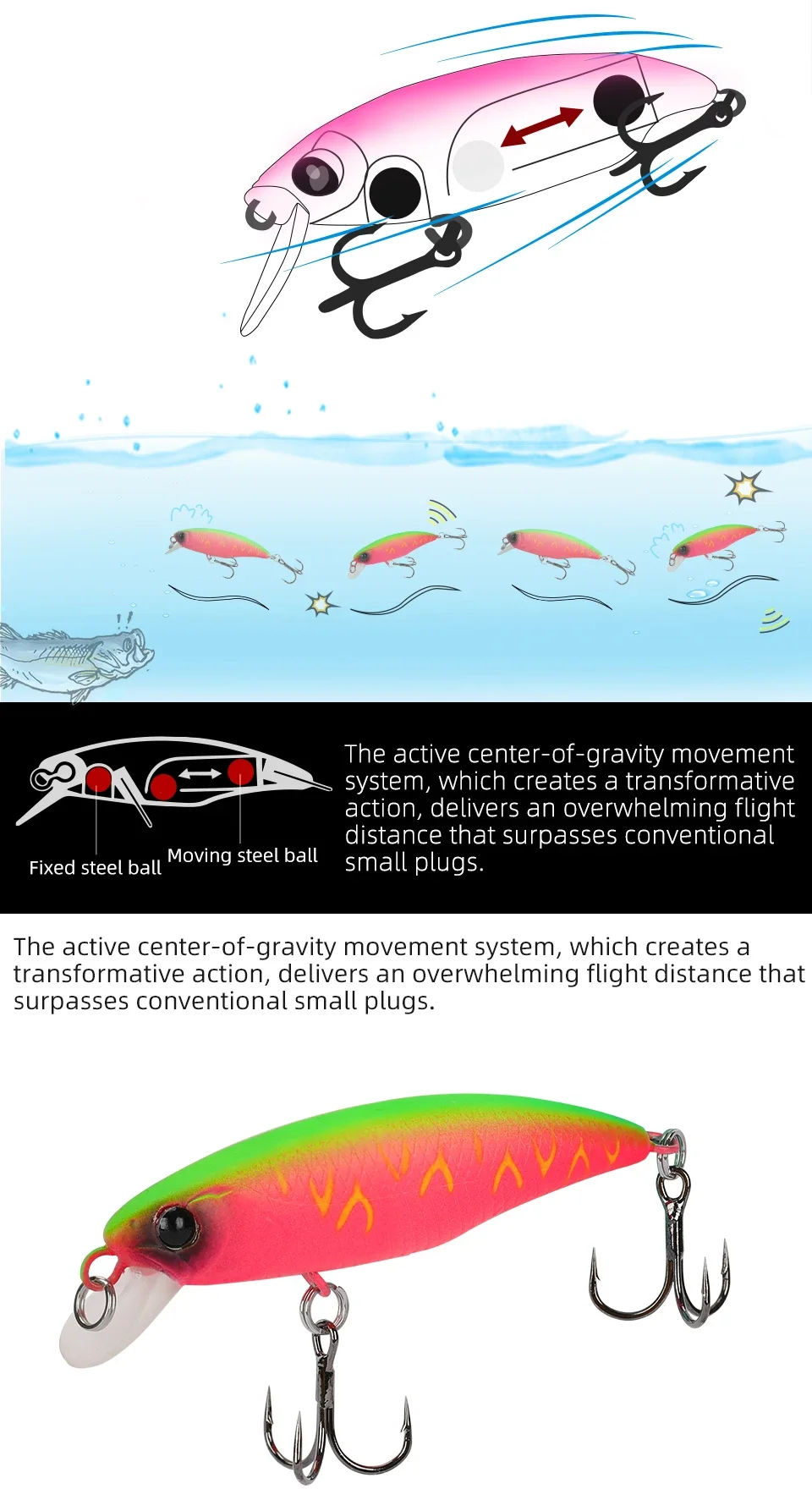 2.El abrumador "impacto" generado por un pequeño cuerpo escondido en la acrobacia.Un pececillo de método de finura de actividad desarrollado para acercarse a "delicado" y "ousado" contra peces grandes y lentos.