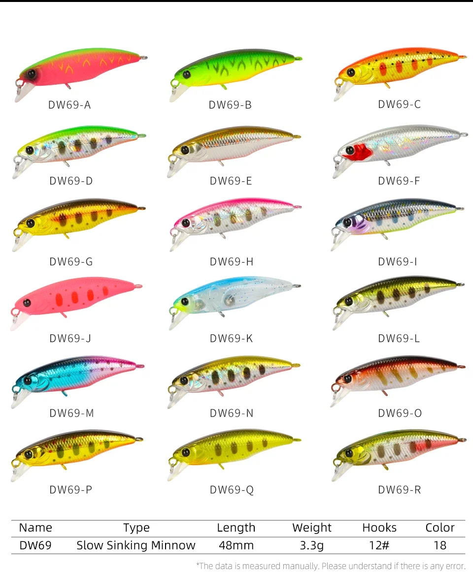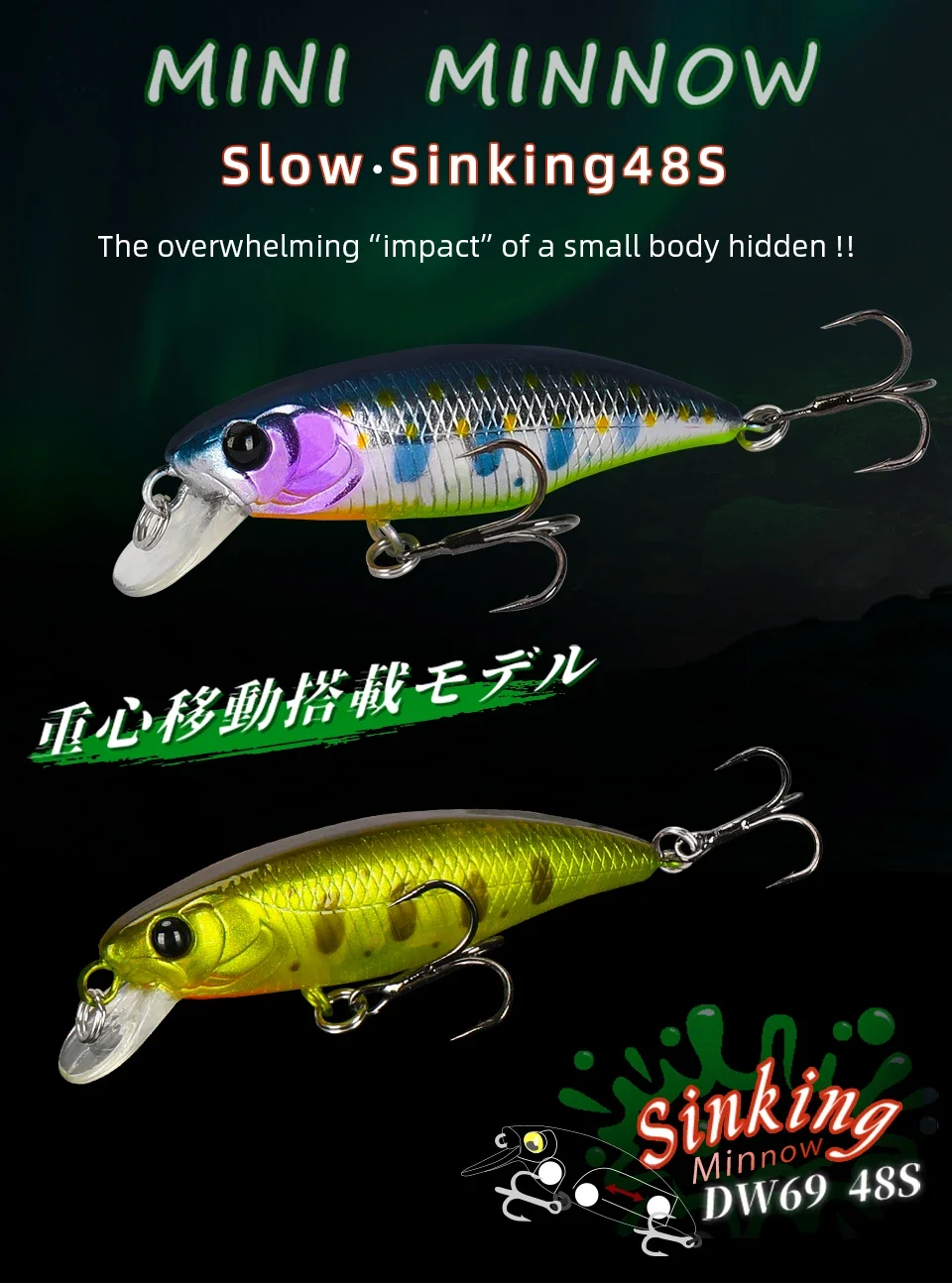 TSURINOYA 48S 48mm 3.3g señuelo de pesca Minnow hundido DW69 Artificial lubina Lucio trucha Jerkbait cebos duros juego ligero Wobbler