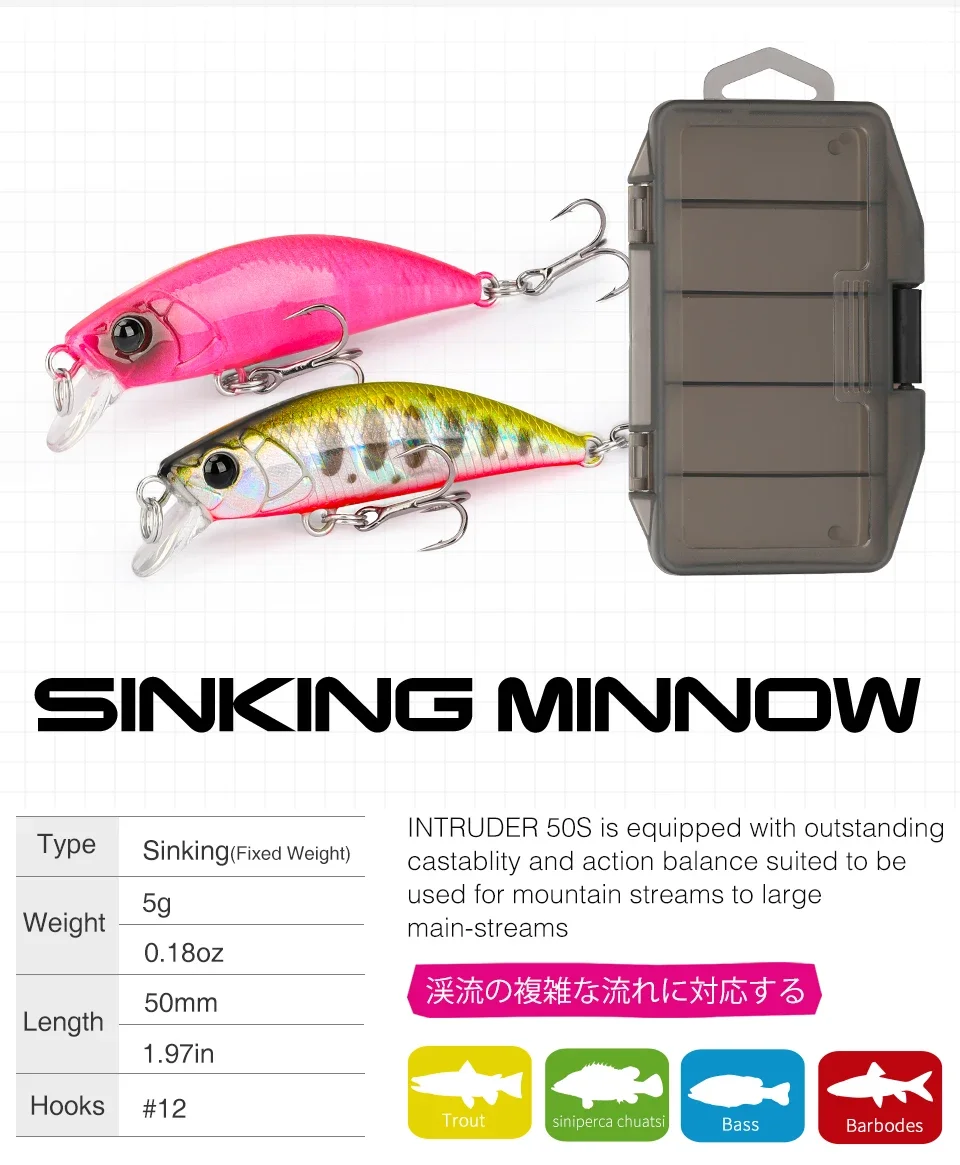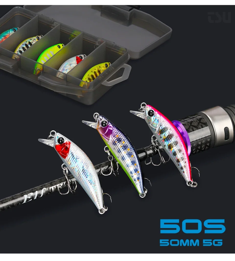 TSURINOYA 5 uds Set 5cm 5g 5 uds hundimiento Minnow pista de intrusión Artificial Jerkbait cebo duro Lucio Wobbler señuelo de pesca Crankbait