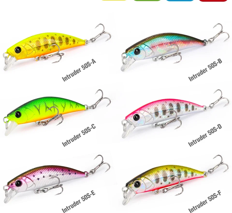 TSURINOYA 50mm 5g hundimiento Minnow señuelo de pesca INTRUDER 50S TROUT Artificial Jerkbait cebo duro Lucio Wobbler flujo Crankbait