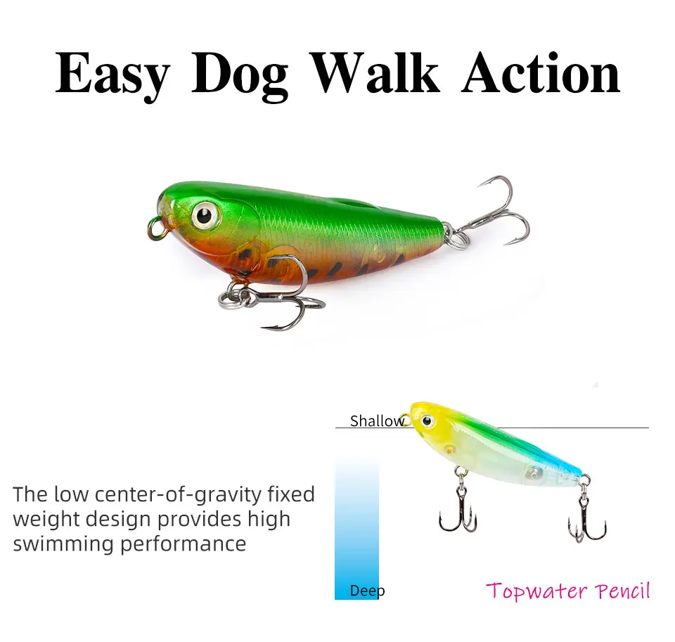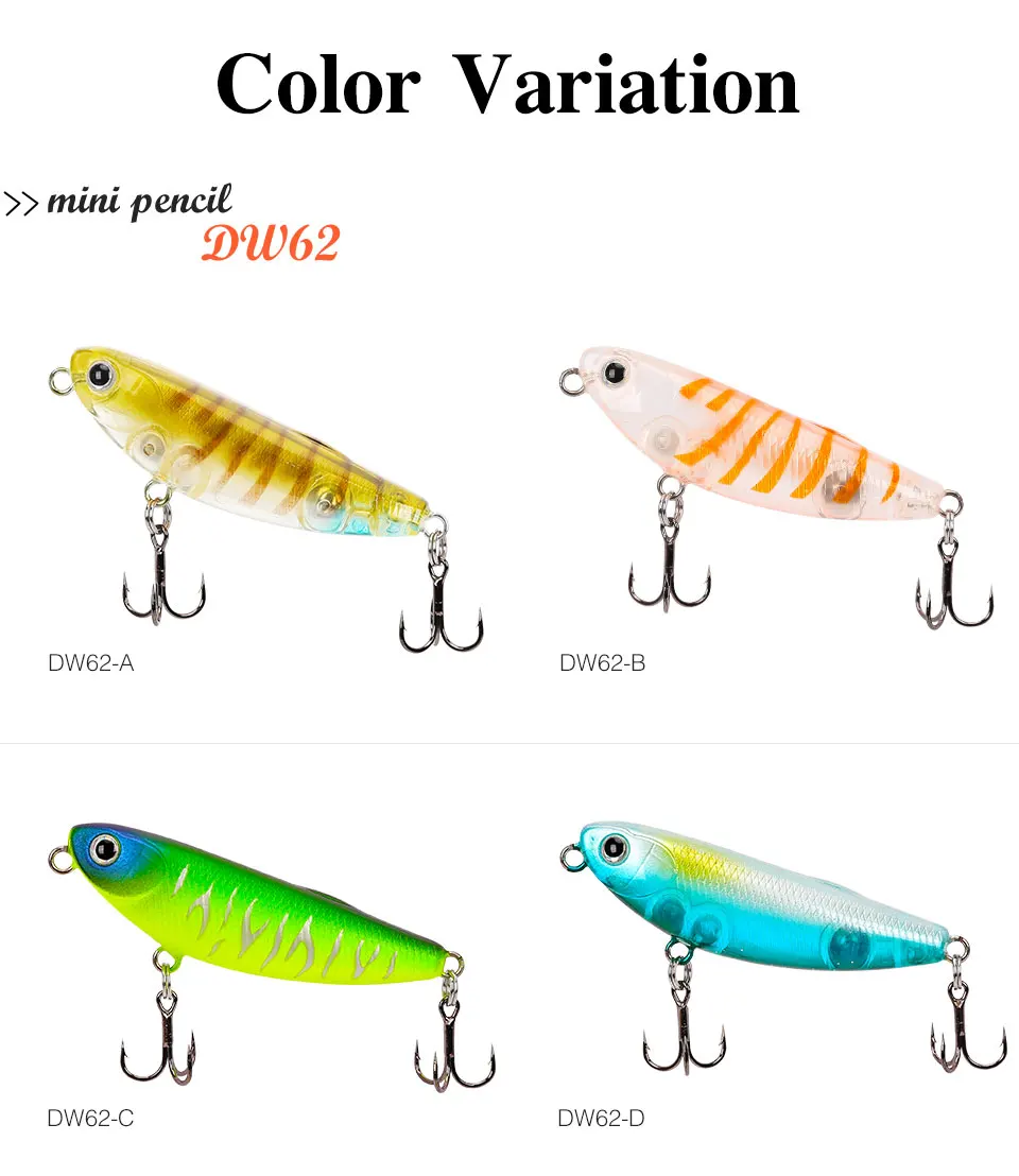 TSURINOYA Señuelo de Pesca Lápiz Mini Señuelo Dura Flotante DW62 Mini Lápiz Wobblers 50mm 5g Topwater Z Walk Action Minnow Swimbait