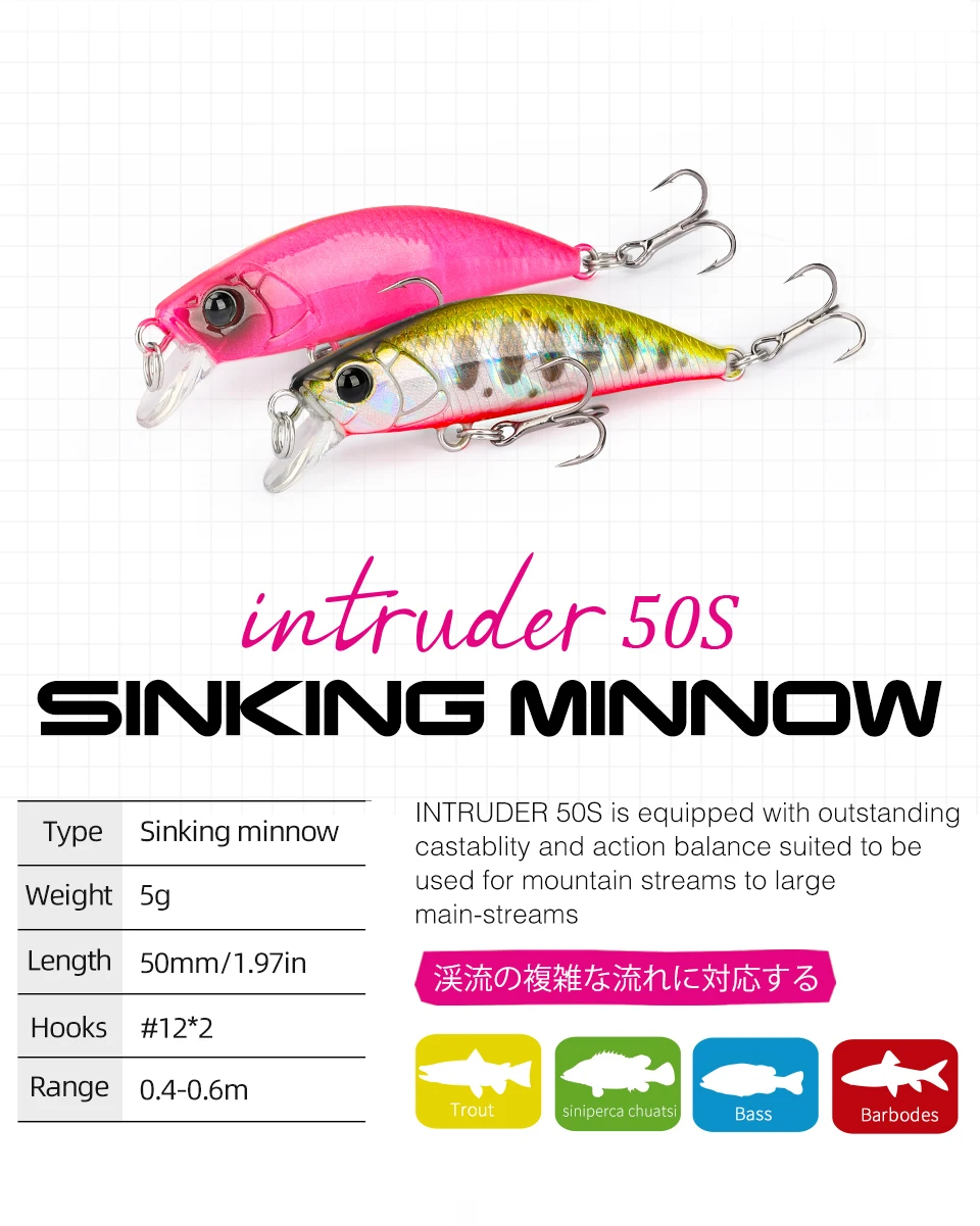 INTRUDER 50S aparece una excelente distancia de lanzamiento y un equilibrio de acción.Es eficaz para transmisiones de montaña a grandes transmisiones principales.