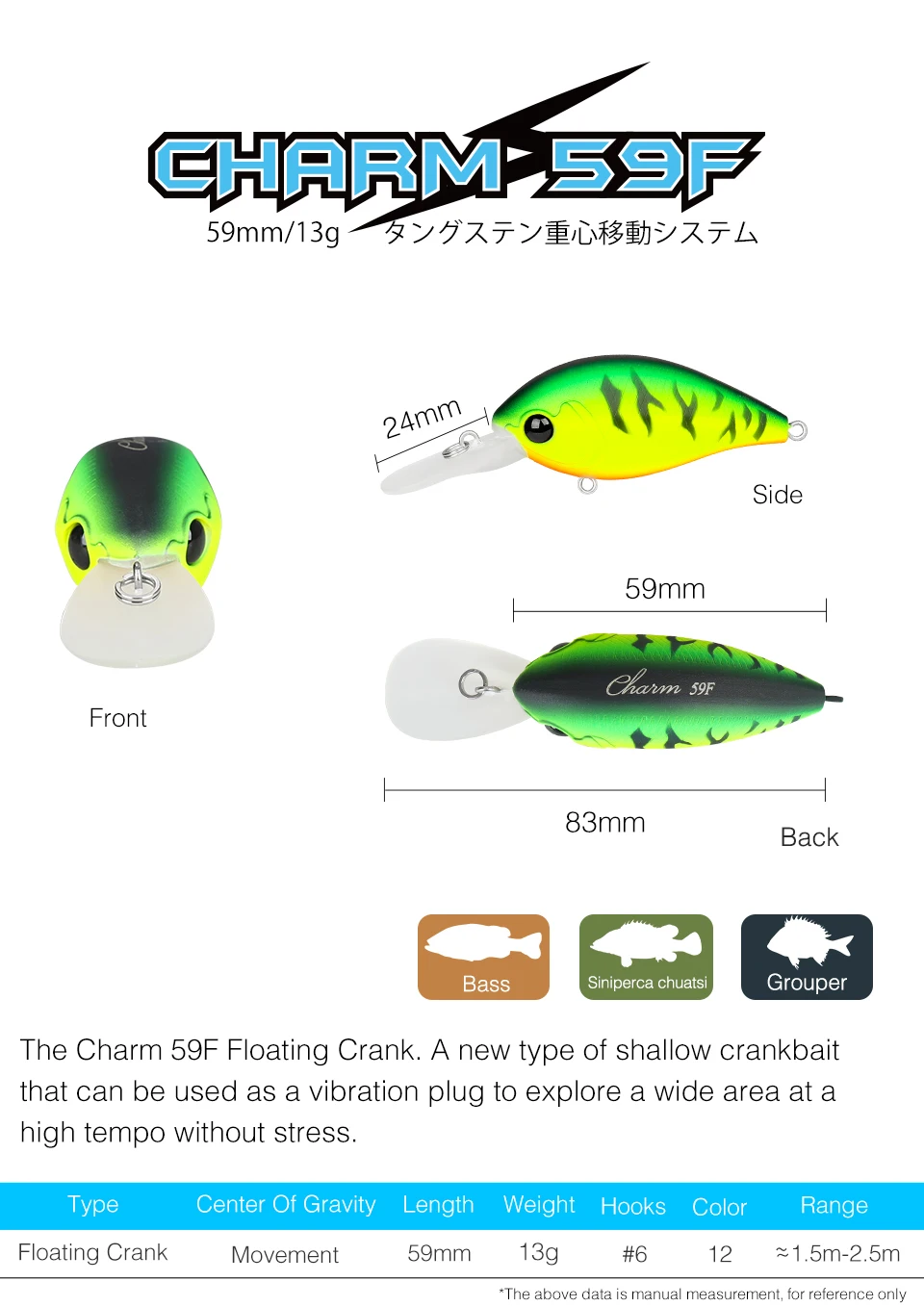 The Charm 59F Floating Crank. A new type of shallow crankbait that can be used as a vibration plug to explore a wide area at a high tempo without stress