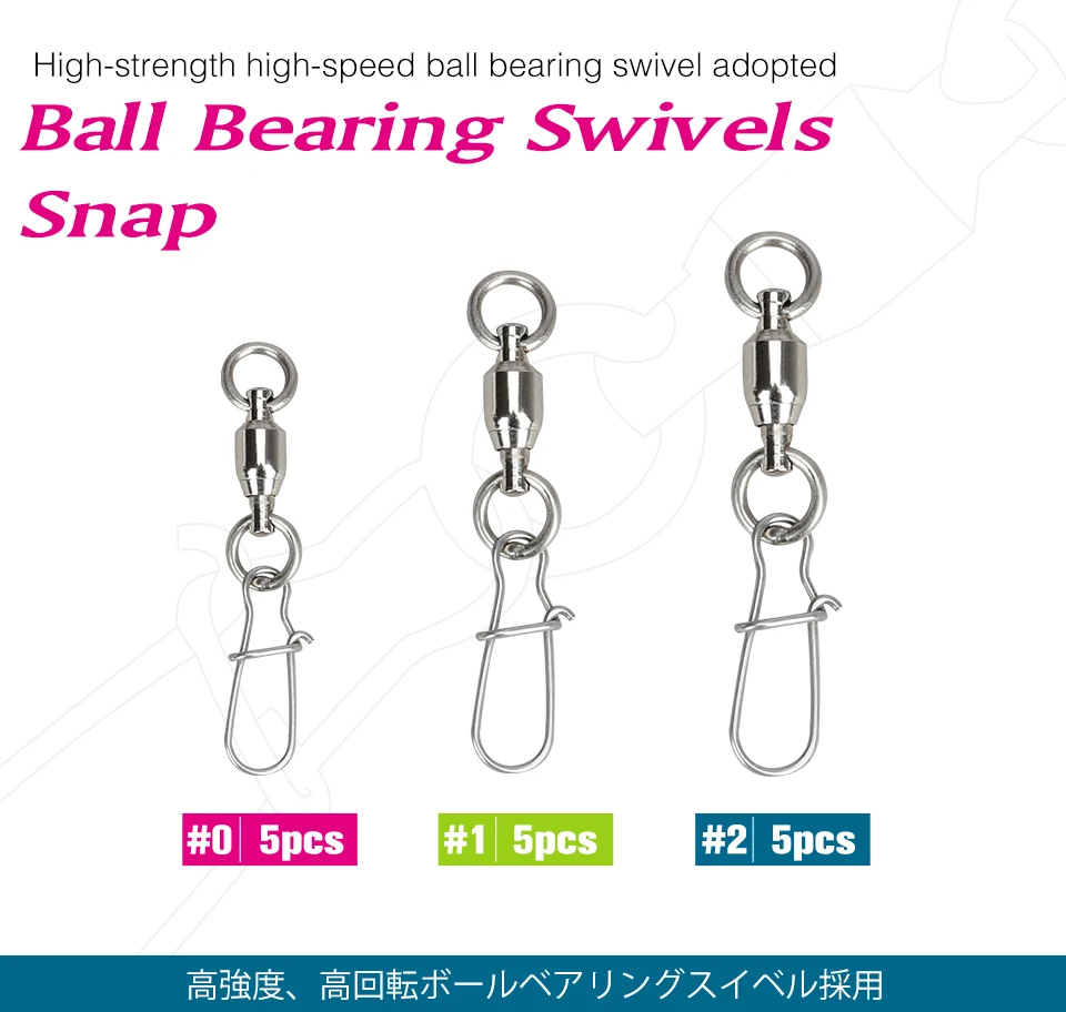TSURINOYA 5 uds rodamientos de bolas giratorios de pesca Snap 0# 1# 2# Accesorios de cuchara de señuelo con conector rodante de alta velocidad de acero inoxidable