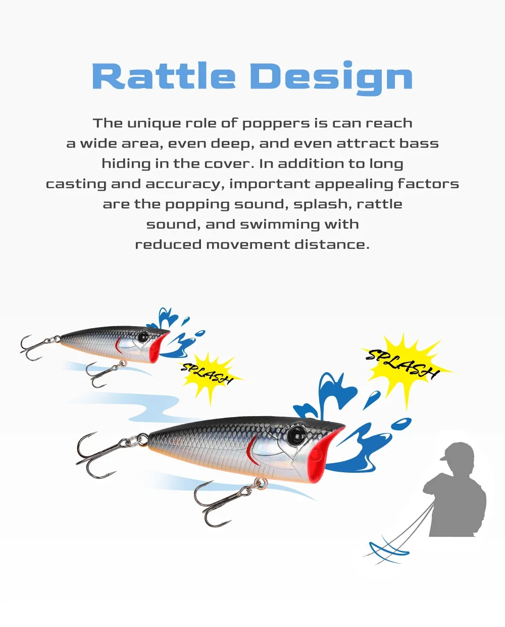 No es una bad popper, una copia de OSP Louder. Hecho de manera bastante eficiente, el color, el largo y el peso interesantes corresponden a lo que se indicó. Entrega rápida, a Moscú en 14 días en la composición de un paquete consolidado.