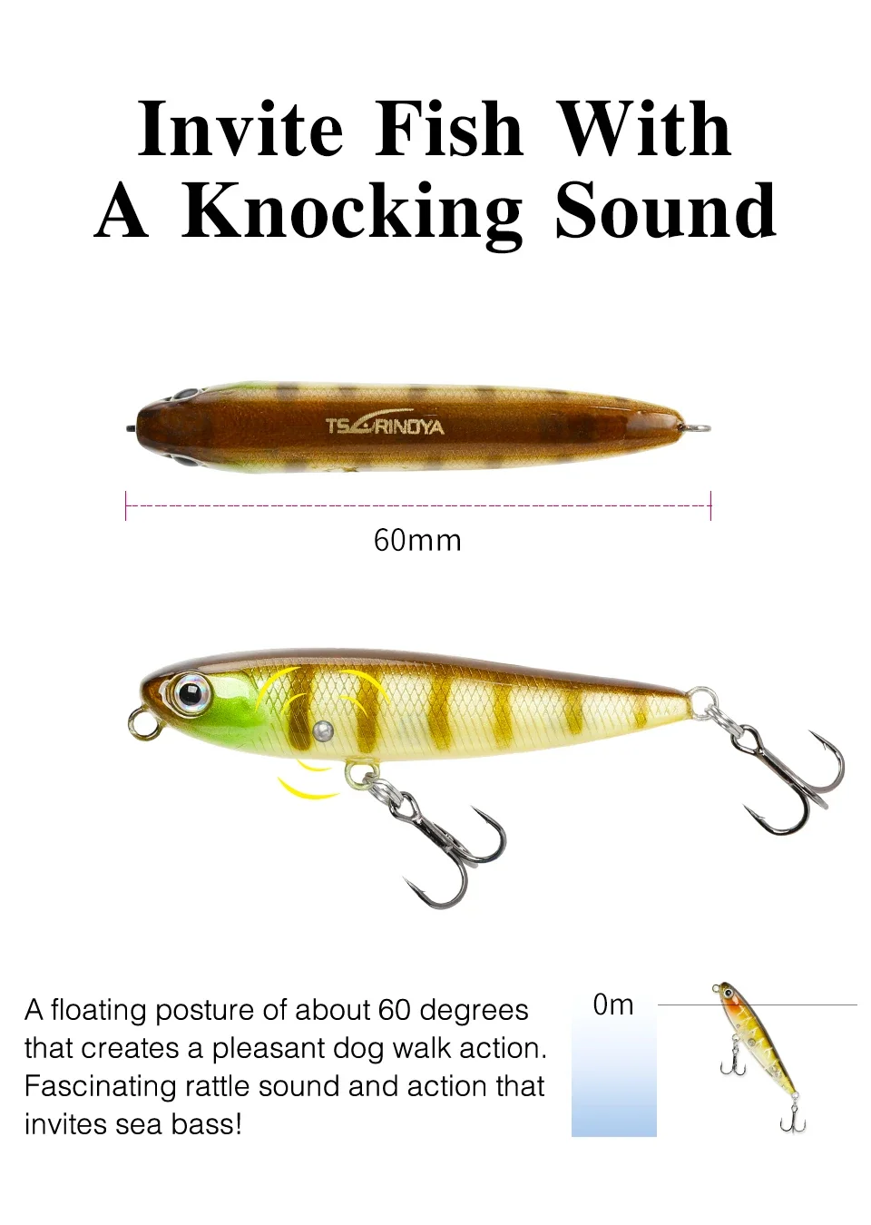 TSURINOYA 60F Topwater Lápiz Señuelo de Pesca DW64 Flotante Dog-walk acción cebo duro Wobblers Swimbait 60mm 3.1g Pesca Isca
