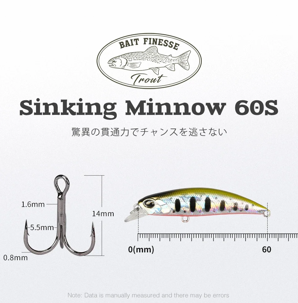 TSURINOYA 60mm 6,1g Señuelos de Pesca de pececillo hundido DW67 60S Jerkbait Stream Bass trucha cebo Mini Crankbait Wobblers aparejos de pesca