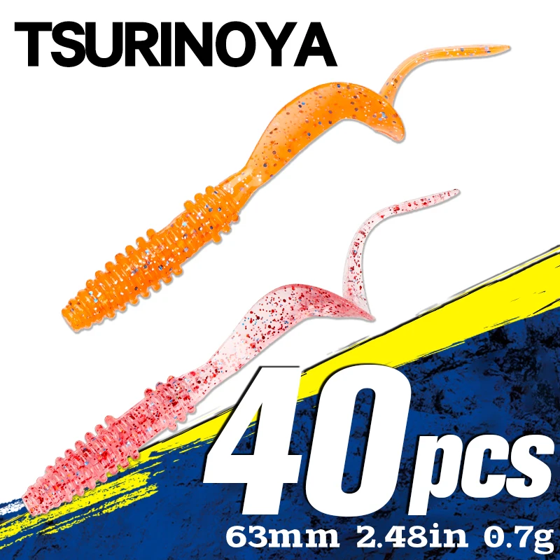 TSURINOYA 63mm 0.7g 40pcs Soft Worm Grub Fishing Lure BOUNDEN Ligh Game Bait Ajing Pike Bass Artificial Silicon Swimbaits
