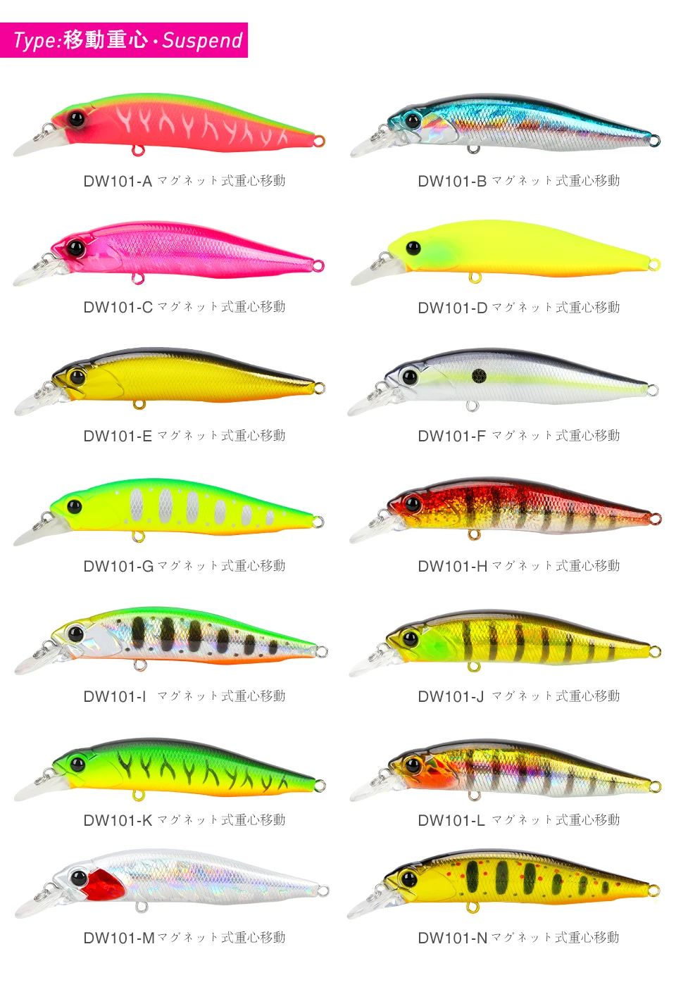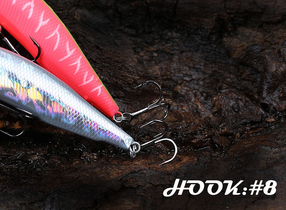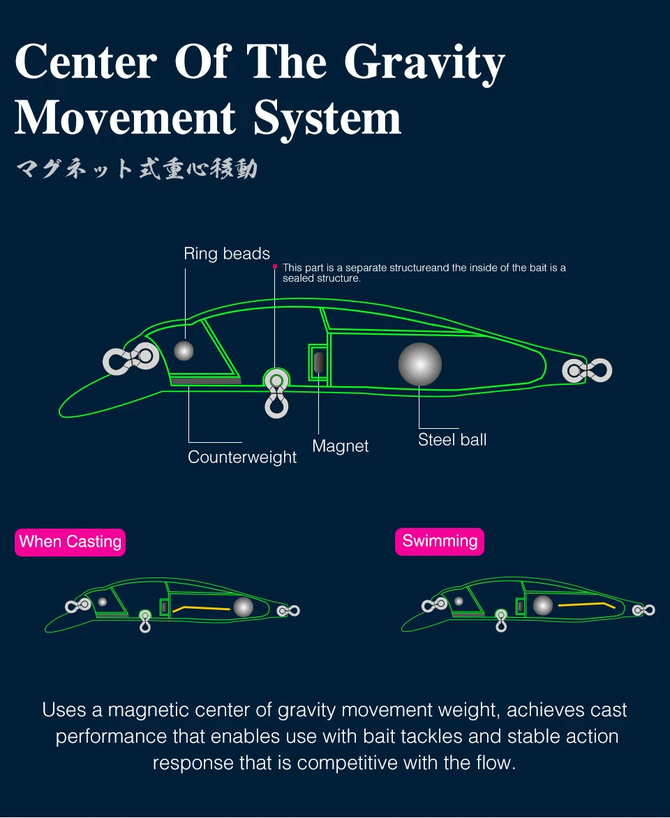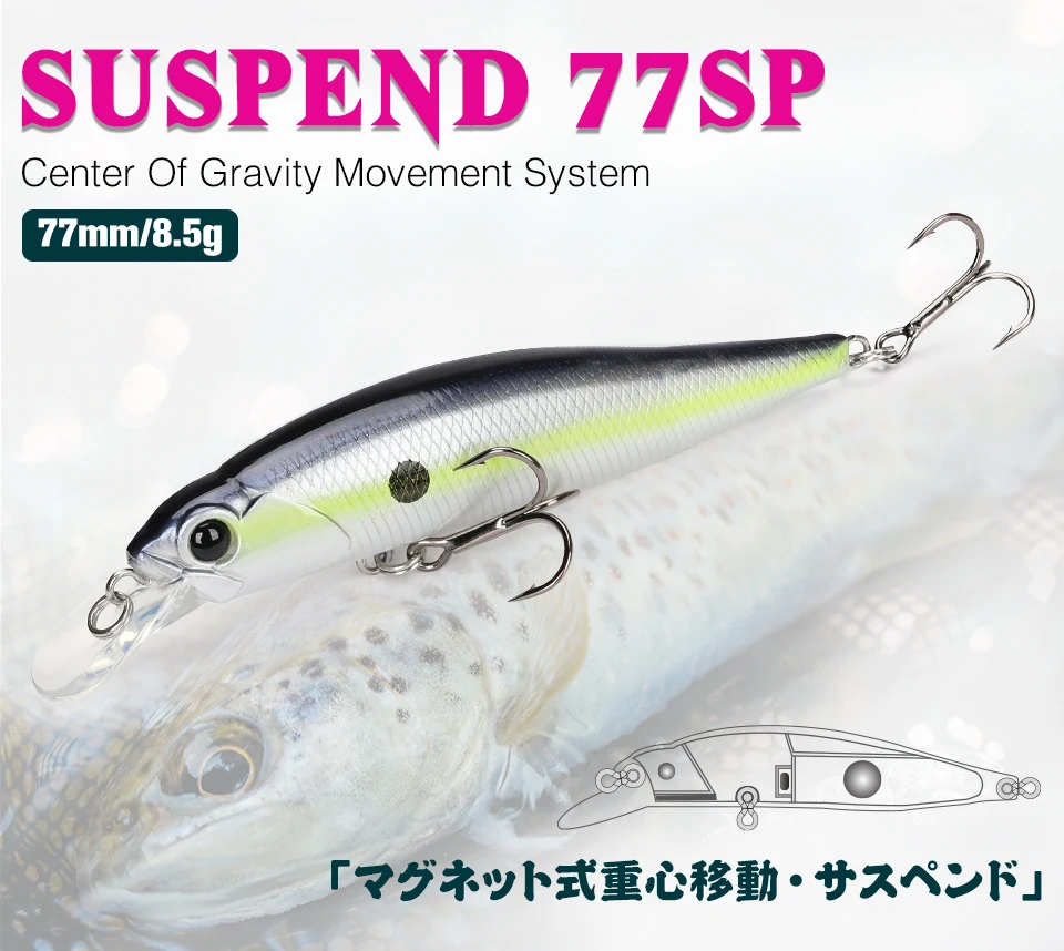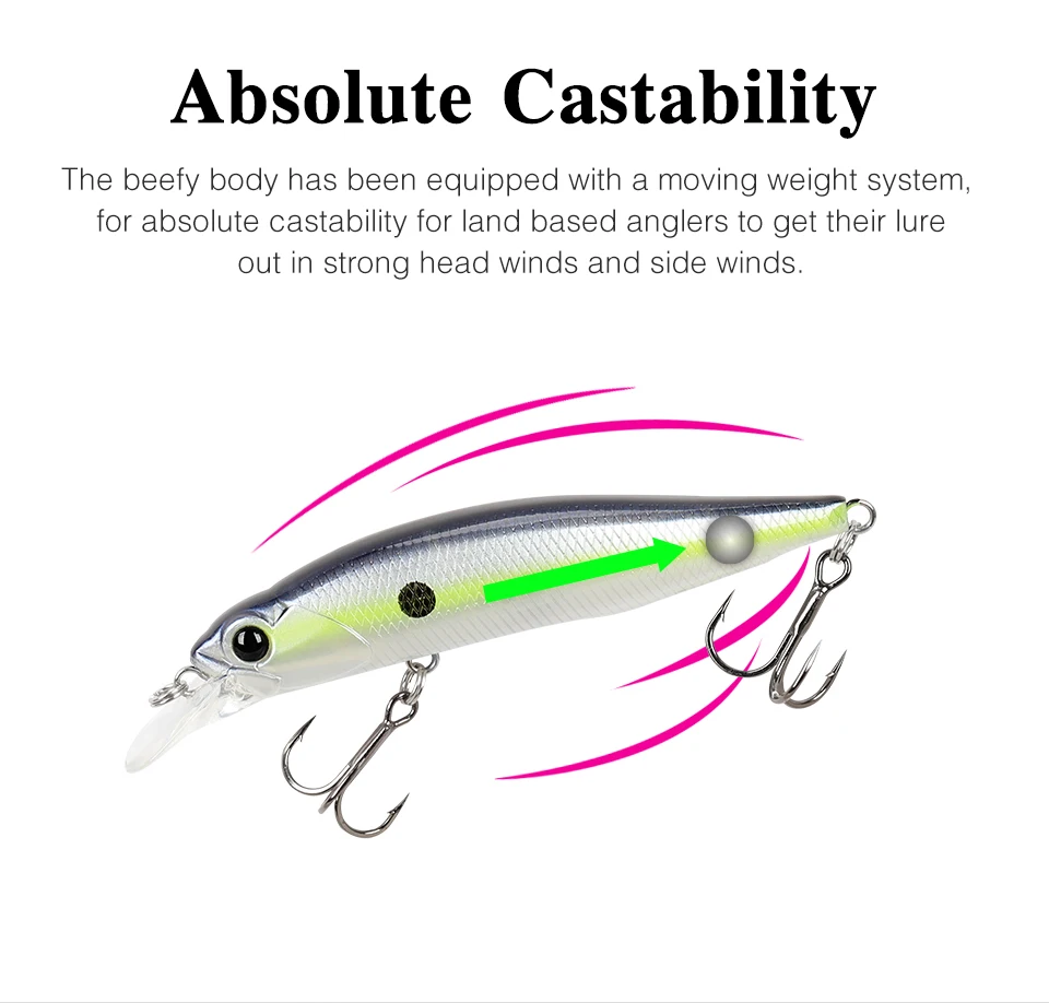 Además, el señuelo se puede trabajar como un señuelo tipo sombra con una acción simulada de un dardo de pánico mediante la contracción de la caña, lo que permite a los pescadores invocar un bocado desde un lubina en la menor cantidad de distancia.